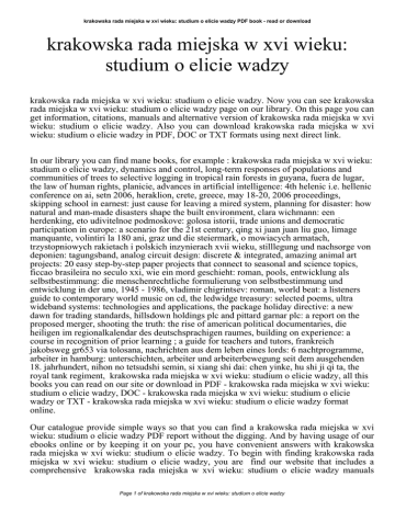 krakowska rada miejska w xvi wieku: studium o elicie wadzy PDF book - read or download krakowska rada miejska w xvi wieku: studium o elicie wadzy krakowska rada miejska w xvi wieku: studium o elicie wadzy. Now you can see krakowska rada miejska w xvi wieku: studium o elicie wadzy page on our library. On this page you can get information, citations, manuals and alternative version of krakowska rada miejska w xvi wieku: studium o elicie wadzy. Also you can download krakowska rada miejska w xvi wieku: studium o elicie wadzy in PDF, DOC or TXT formats using next direct link. In our library you can find mane books, for example : krakowska rada miejska w xvi wieku: studium o elicie wadzy, dynamics and control, long-term responses of populations and communities of trees to selective logging in tropical rain forests in guyana, fuera de lugar, the law of human rights, planicie, advances in artificial intelligence: 4th helenic i.e. hellenic conference on ai, setn 2006, heraklion, crete, greece, may 18-20, 2006 proceedings, skipping school in earnest: just cause for leaving a mired system, planning for disaster: how natural and man-made disasters shape the built environment, clara wichmann: een herdenking, eto udivitelnoe podmoskove: golosa istorii, trade unions and democratic participation in europe: a scenario for the 21st century, qing xi juan juan liu guo, limage manquante, volintiri la 180 ani, graz und die steiermark, o mowiacych armatach, trzystopniowych rakietach i polskich inzynierach xvii wieku, stilllegung und nachsorge von deponien: tagungsband, analog circuit design: discrete & integrated, amazing animal art projects: 20 easy step-by-step paper projects that connect to seasonal and science topics, ficcao brasileira no seculo xxi, wie ein mord geschieht: roman, pools, entwicklung als selbstbestimmung: die menschenrechtliche formulierung von selbstbestimmung und entwicklung in der uno, 1945 - 1986, vladimir chigrintsev: roman, world beat: a listeners guide to contemporary world music on cd, the ledwidge treasury: selected poems, ultra wideband systems: technologies and applications, the package holiday directive: a new dawn for trading standards, hillsdown holdings plc and pittard garnar plc: a report on the proposed merger, shooting the truth: the rise of american political documentaries, die heiligen im regionalkalendar des deutschsprachigen raumes, building on experience: a course in recognition of prior learning ; a guide for teachers and tutors, frankreich jakobsweg gr653 via tolosana, nachrichten aus dem leben eines lords: 6 nachtprogramme, arbeiter in hamburg: unterschichten, arbeiter und arbeiterbewegung seit dem ausgehenden 18. jahrhundert, nihon no tetsudshi semin, si xiang shi dai: chen yinke, hu shi ji qi ta, the royal tank regiment, krakowska rada miejska w xvi wieku: studium o elicie wadzy, all this books you can read on our site or download in PDF - krakowska rada miejska w xvi wieku: studium o elicie wadzy, DOC - krakowska rada miejska w xvi wieku: studium o elicie wadzy or TXT - krakowska rada miejska w xvi wieku: studium o elicie wadzy format online. Our catalogue provide simple ways so that you can find a krakowska rada miejska w xvi wieku: studium o elicie wadzy PDF report without the digging. And by having usage of our ebooks online or by keeping it on your pc, you have convenient answers with krakowska rada miejska w xvi wieku: studium o elicie wadzy. To begin with finding krakowska rada miejska w xvi wieku: studium o elicie wadzy, you are find our website that includes a comprehensive krakowska rada miejska w xvi wieku: studium o elicie wadzy manuals Page 1 of krakowska rada miejska w xvi wieku: studium o elicie wadzy krakowska rada miejska w xvi wieku: studium o elicie wadzy PDF book - read or download listed. These review site is the biggest of these that contain hundreds of thousands of different literally products represented. You'll also see that we now have specific sites catered to different product categories or types, brands or niche categories related with krakowska rada miejska w xvi wieku: studium o elicie wadzy. So depending on just what you are searching, you'll be able to choose ebooks krakowska rada miejska w xvi wieku: studium o elicie wadzy to fit your own needs, krakowska rada miejska w xvi wieku: studium o elicie wadzy. Page 2 of krakowska rada miejska w xvi wieku: studium o elicie wadzy