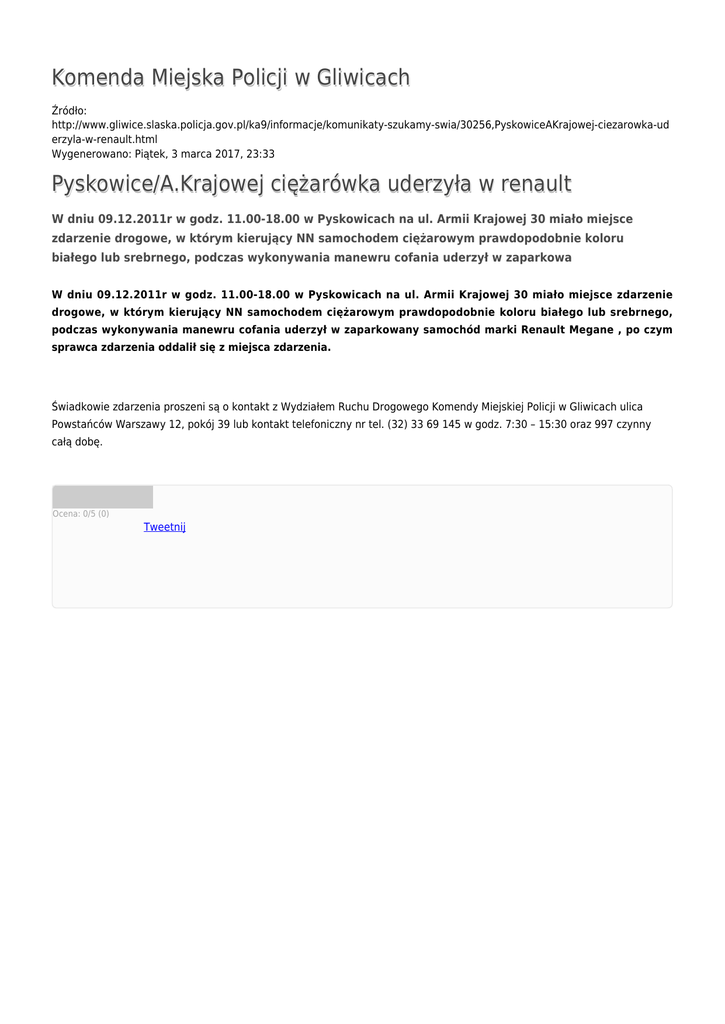 Generuj PDF - Komenda Miejska Policji w Gliwicach