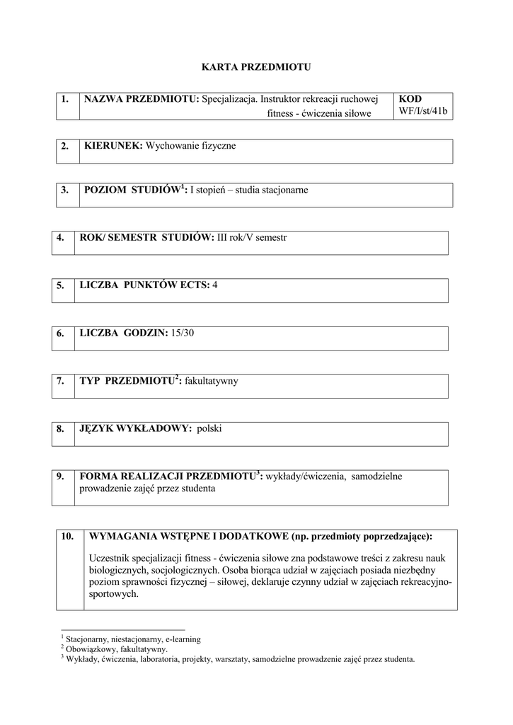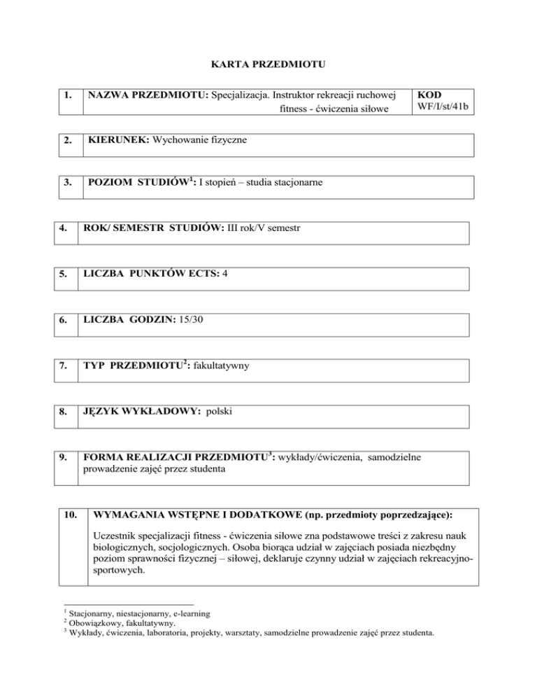 karta przedmiotu - AWF Biała Podlaska