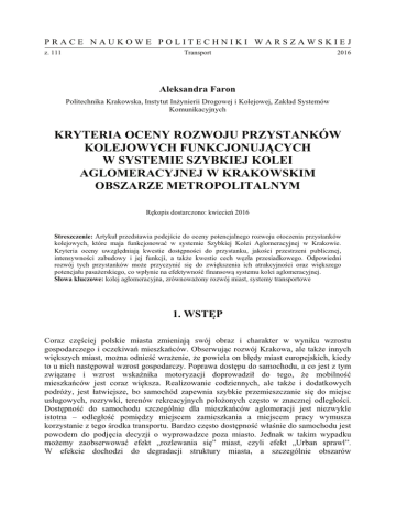 AGGLOMERATION RAILWAY SYSTEM WITHIN THE KRAKOW