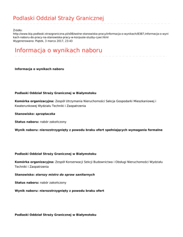 Informacja o wynikach naboru - Podlaski Oddział Straży Granicznej