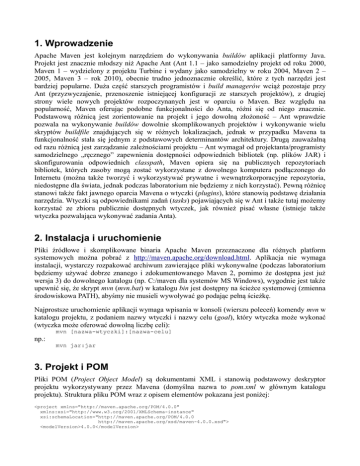 1. Wprowadzenie 2. Instalacja i uruchomienie 3. Projekt i POM