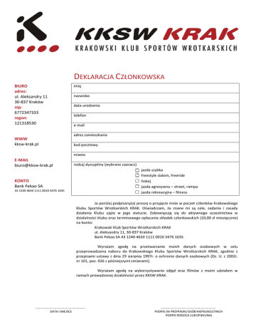 deklaracja członkowska - kksw-krak