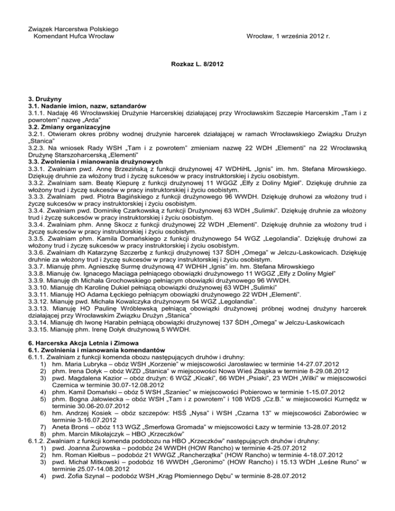 rozkaz L8/2012 - Hufiec ZHP Wrocław