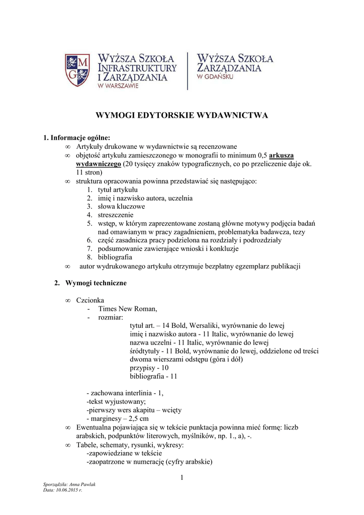 wymogi edytorskie