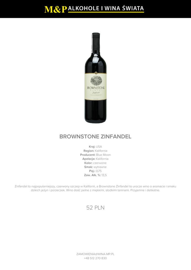 BROWNSTONE ZINFANDEL 45 PLN