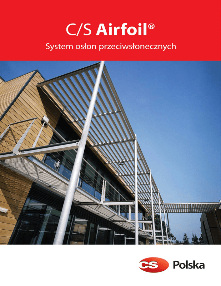 C/S Airfoil® Systemy chroniące przed promieniami słonecznymi Już przed ponad 50-cioma laty architekci stwierdzili, że dzięki zastosowaniu systemów zabezpieczających przed wpływami promieniowania słonecznego, warunki panujące we wnętrzach budynków są komfortowe do pracy i nauki. Stosowanie zewnętrznych profili przeciwsłonecznych to najbardziej skuteczna metoda pozwalająca na zredukowanie ilości ciepła oraz światła przedostającego się do budynków. Właściwie skonstruowane profile przeciwsłoneczne mogą zmniejszać dopływ energii cieplnej nawet o 85%, a jednocześnie przyczyniają się do lepszego wykorzystania powierzchni użytkowej wnętrz budynków poprzez zapewnienie komfortowych warunków pracy w miejscach znajdujących się w bezpośrednim sąsiedztwie okien. Instalacje C/S Airfoil umożliwiają ponadto dostosowanie budynków do wymogów „Przepisów budowlanych”. Profile C/S Airfoil są równie estetyczne, co praktycznie użyteczne, dzięki łagodnej linii i gładkiej powierzchni Wielkości montażowych elementów profilowanych montażowych elementów profilowanych. Profile te nadają wykonanym z ich użyciem konstrukcjom AF-100 20 niezwykle estetyczny wygląd i indywidualną formę 100 pełniąc przy tym rolę skutecznego zabezpieczenia przed nadmiernym nagrzewaniem się wnętrz budynków AF-150 30 pod wpływem promieniowania słonecznego. łączone z konstrukcją nośną na szereg różnych sposobów i w rozmaitej konfiguracji, dzięki czemu zapewnione jest doskonałe dopasowanie ich do zaprojektowanego kształtu budowli. Osadzane na wspornikach profile przeciwsłoneczne nadają się idealnie zarówno do nowych, jak i istniejących budynków. Zapewniają Elementy jednoczęściowe 151 Omawiane tu elementy profilowane C/S Airfoil mogą być AF-200 38 203 AF-270 50 one efektywną ochronę przy jednoczesnym zachowaniu 270 nieograniczonej widoczności. AF-300 Sposób wkomponowania poszczególnych elementów 53 w obrys budynku oraz ich wielkości jednostkowe mogą być dobierane stosownie do wymagań projektowych. Elementy profilowane montowane na fasadach budynków 300 Na specjalne zamówienie nadają się wyśmienicie wszędzie tam, gdzie wymagana AF-380 przed niepożądanymi skutkami bezpośredniego działania promieni słonecznych. Wybór pomiędzy pionowym, a poziomym ustawieniem montażowych elementów profilowanych uzależniony jest przede wszystkim od zaprojektowanej formy i funkcji budynku. Forma oznacza tu kształt przyjętej wizji architektonicznej, natomiast funkcja, to wszystko to, co wiąże się z wymaganą ilością światła słonecznego przenikającego do wnętrza budynku w zależności od orientacji budynku. C/S Airfoil strona 2 Elementy dwuczęściowe jest bardzo efektywna ochrona wnętrz obiektów 66 380 AF-430 70 430 Montażowy element profilowany C/S Airfoil Nasze Przykłady Strony 4-5 Uchwyty Strony 6-7 Mocowanie z użyciem uchwytów Montażowy element profilowany C/S Airfoil Zatyczka końcowa Uchwyty Bezpośrednie zamocowania końcowe Strony 8-9 Bezpośrednie mocowanie do podpór Montażowy element profilowany C/S Airfoil Elementy zamawiane Strona 10 Zatyczko-uchwyty do mocowania bezpośredniego Informacje techniczne Strony 11-14 C/S Airfoil strona 3 C/S Airfoil® Profile w zastosowaniu praktycznym C/S Airfoil strona 4 A B D E F G C H A. Hardwicke Pavilions - Shrewsbury, Wielka Brytania F. MHB Bank Polska S.A. - Warszawa, Polska B. Szkoła - Beaminster, Wielka Brytania G. Salon Volkswagena - Lubin, Polska C. Hardwicke Pavilions - Shrewsbury, Wielka Brytania H. Red Maids' Junior School - Bristol, Wielka Brytania D. Muzeum Malagi - Malaga, Hiszpania I. Centrum Medyczne Augusta - Waszyngton, USA E. Uniwersytet - Stanford, USA J. Motorola - Harvard, USA I J C/S Airfoil strona 5 C/S Airfoil® Uchwyty mocujące Tłoczone uchwyty aluminiowe składają się Rodzaje uchwytów na prosty i efektywny system mocowania profili przeciwsłonecznych C/S Airfoil. Uchwyty te dostępne są w wersjach umożliwiających mocowanie elementów pod kątami 45o oraz 90o. Standardowe szerokości wynoszą odpowiednio 50 mm dla uchwytów AF-100, AF-150 i AF-200 Kąt 90o Kąt 45o oraz 100 mm dla AF-270 i AF-300. Uchwyty te przystosowane są do instalowania ich na fasadach budynków i na różnego rodzaju konstrukcjach. Montaż na fasadach budynków (w pozycji poziomej lub pionowej) Montaż na uchwytach mocujących Profil C/S Airfoil Podpora konstrukcyjna (nie podlega dostawie przez producenta) Profil C/S Airfoil Uchwyt 90o Zatyczka końcowa Uchwyt 45o Zatyczka końcowa Podpora konstrukcyjna (nie podlega dostawie przez producenta) Do wybranych profili dostarcza się zatyczki końcowe z aluminium lub stali nierdzewnej. C/S Airfoil strona 6 Przekroje elewacji Montaż pionowy z użyciem uchwytów 90o Montaż pionowy z użyciem uchwytów 45o Montaż poziomy z wykorzystaniem uchwytów 45o Szczegóły w informacjach technicznych: - zgodność uchwytu i profilu (str. 11) - szerokości uchwytów i średnice otworów (str. 13) - typowe odstępy rozstawienia profili (str. 12) C/S Airfoil strona 7 C/S Airfoil® Mocowanie bezpośrednie na podporach Płytki ze stali nierdzewnej do bezpośredniego Zatyczko-uchwyty standardowe Konstrukcja na zamówienie mocowania na podporach dostarczane są w wersjach umożliwiających ich montaż pod kątami 30o/45o/60o i 90o, dzięki czemu zapewniona jest duża wszechstronność ich zastosowania. Mocowanie ich możliwe jest od tyłu fasady budynku przy użyciu pionowych konstrukcji wsporczych ze stali lub poziomych belek nośnych. Zatyczko-uchwyt 90o do mocowania bezpośredniego Zatyczko-uchwyt 30o/45o i 60o do mocowania bezpośredniego Zalecana metoda mocowania doczołowego* Zalecana metoda mocowania bocznego* * Istnieje możliwość dostarczenia zatyczko-uchwytów o odmiennych kształtach oraz innych kątach mocowania profili. W sprawie szczegółów prosimy kontaktować się z naszym Działem Technicznym. Montaż z użyciem konstrukcji Zaty
