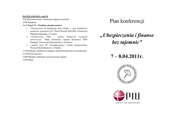 Plan konferencji - Koło naukowe ubezpieczeń i doradztwa