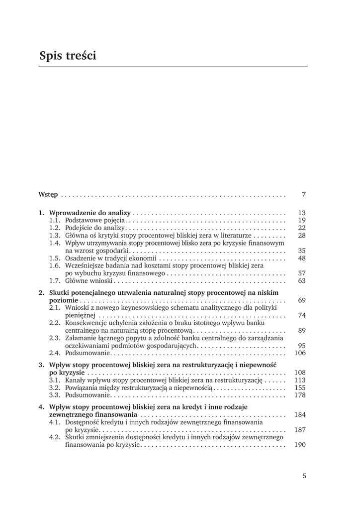 Spis treści Wstęp . . . . . . . . . . . . . . . . . . . . . . . . . . . . . . . . . . . . . . . . . . . . . . . . . . . . . . . . . . . . 7 1. Wprowadzenie do analizy. . . . . . . . . . . . . . . . . . . . . . . . . . . . . . . . . . . . . . . . . 1.1. Podstawowe pojęcia. . . . . . . . . . . . . . . . . . . . . . . . . . . . . . . . . . . . . . . . . . . 1.2. Podejście do analizy. . . . . . . . . . . . . . . . . . . . . . . . . . . . . . . . . . . . . . . . . . . 1.3. Główna oś krytyki stopy procentowej bliskiej zera w literaturze. . . . . . . . . 1.4. Wpływ utrzymywania stopy procentowej blisko zera po kryzysie finansowym na wzrost gospodarki. . . . . . . . . . . . . . . . . . . . . . . . . . . . . . . . . . . . . . . . . . 1.5. Osadzenie w tradycji ekonomii . . . . . . . . . . . . . . . . . . . . . . . . . . . . . . . . . . 1.6. Wcześniejsze badania nad kosztami stopy procentowej bliskiej zera po wybuchu kryzysu finansowego . . . . . . . . . . . . . . . . . . . . . . . . . . . . . . . . 1.7. Główne wnioski. . . . . . . . . . . . . . . . . . . . . . . . . . . . . . . . . . . . . . . . . . . . . . 13 19 22 28 35 48 57 63 2.Skutki potencjalnego utrwalenia naturalnej stopy procentowej na niskim poziomie. . . . . . . . . . . . . . . . . . . . . . . . . . . . . . . . . . . . . . . . . . . . . . . . . . . . . . . 69 2.1. Wnioski z nowego keynesowskiego schematu analitycznego dla polityki pieniężnej . . . . . . . . . . . . . . . . . . . . . . . . . . . . . . . . . . . . . . . . . . . . . . . . . . 74 2.2. Konsekwencje uchylenia założenia o braku istotnego wpływu banku centralnego na naturalną stopę procentową . . . . . . . . . . . . . . . . . . . . . . . . . 89 2.3. Załamanie łącznego popytu a zdolność banku centralnego do zarządzania oczekiwaniami podmiotów gospodarujących. . . . . . . . . . . . . . . . . . . . . . . . 95 2.4. Podsumowanie. . . . . . . . . . . . . . . . . . . . . . . . . . . . . . . . . . . . . . . . . . . . . . . 106 3.Wpływ stopy procentowej bliskiej zera na restrukturyzację i niepewność po kryzysie . . . . . . . . . . . . . . . . . . . . . . . . . . . . . . . . . . . . . . . . . . . . . . . . . . . . . 3.1. Kanały wpływu stopy procentowej bliskiej zera na restrukturyzację. . . . . . 3.2. Powiązania między restrukturyzacją a niepewnością . . . . . . . . . . . . . . . . . . . . . 3.3. Podsumowanie. . . . . . . . . . . . . . . . . . . . . . . . . . . . . . . . . . . . . . . . . . . . . . . 108 113 155 178 4.Wpływ stopy procentowej bliskiej zera na kredyt i inne rodzaje zewnętrznego finansowania . . . . . . . . . . . . . . . . . . . . . . . . . . . . . . . . . . . . . . . 184 4.1. Dostępność kredytu i innych rodzajów zewnętrznego finansowania po kryzysie. . . . . . . . . . . . . . . . . . . . . . . . . . . . . . . . . . . . . . . . . . . . . . . . . . 187 4.2. Skutki zmniejszenia dostępności kredytu i innych rodzajów zewnętrznego finansowania po kryzysie. . . . . . . . . . . . . . . . . . . . . . . . . . . . . . . . . . . . . . . 190 5 Spis treści 4.3. Sposoby uwzględniania kredytu w nowym keynesowskim schemacie analitycznym. . . . . . . . . . . . . . . . . . . . . . . . . . . . . . . . . . . . . . . . . . . . . . . . 201 4.4. Wpływ niskiego natężenia restrukturyzacji na korzystanie z kredytu i innych źródeł zewnętrznego finansowania . . . . . . . . . . . . . . . . . . . . . . . . 205 4.5. Podsumowanie. . . . . . . . . . . . . . . . . . . . . . . . . . . . . . . . . . . . . . . . . . . . . . . 244 5.Wpływ stopy procentowej bliskiej zera na zdolność banku centralnego do zwiększania podaży pieniądza . . . . . . . . . . . . . . . . . . . . . . . . . . . . . . . . . . . 5.1. Pieniądz w nowym keynesowskim schemacie analitycznym i praktyce banków centralnych. . . . . . . . . . . . . . . . . . . . . . . . . . . . . . . . . . . . . . . . . . . 5.2. Kryzys finansowy i stopa procentowa bliska zera a zdolność banku centralnego do zwiększenia podaży pieniądza. . . . . . . . . . . . . . . . . . . . . . . 5.3. Stopa procentowa bliska zera a uboczne skutki ilościowego luzowania polityki pieniężnej. . . . . . . . . . . . . . . . . . . . . . . . . . . . . . . . . . . . . . . . . . . . 5.4. Podsumowanie. . . . . . . . . . . . . . . . . . . . . . . . . . . . . . . . . . . . . . . . . . . . . . . 251 259 282 308 328 6.Wpływ stopy procentowej bliskiej zera na stan finansów publicznych . . . . . 6.1. Skutki stymulacji fiskalnej w warunkach stopy procentowej bliskiej zera. . 6.2. Pułapka zerowej stopy procentowej i narastającego długu publicznego. . . . . 6.3. Podsumowanie. . . . . . . . . . . . . . . . . . . . . . . . . . . . . . . . . . . . . . . . . . . . . . . 333 346 361 383 7.Obserwacje z Japonii ze Szwecją i Koreą Południową w tle. . . . . . . . . . . . . . 7.1. Naturalna stopa procentowa, wzrost gospodarczy, restrukturyzacja . . . . . . 7.2. Kredyt . . . . . . . . . . . . . . . . . . . . . . . . . . . . . . . . . . . . . . . . . . . . . . . . . . . . . 7.3. Baza monetarna, podaż pieniądza, deflacja . . . . . . . . . . . . . . . . . . . . . . . . 7.4. Finanse publiczne, podejście rządu do restrukturyzacji . . . . . . . . . . . . . . . 7.5. Podsumowanie. . . . . . . . . . . . . . . . . . . . . . . . . . . . . . . . . . . . . . . . . . . . . . . 388 398 409 424 433 451 8.Wnioski z analizy – rekomendacje dla polityki pieniężnej . . . . . . . . . . . . . . . 8.1. Rekomendacje dla polityki stopy procentowej po wybuchu kryzysu finansowego. . . . . . . . . . . . . . . . . . . . . . . . . . . . . . . . . . . . . . . . . . . . . . . . . 8.2. Rekomendacje odnośnie do ilościowego luzowania po wybuchu kryzysu finansowego. . . . . . . . . . . . . . . . . . . . . . . . . . . . . . . . . . . . . . . . . . . . . . . . . 8.3. Polityka pieniężna w krajach nieprzechodzących kryzysu finansowego, w warunkach niekonwencjonalnych działań podejmowanych przez główne banki centralne . . . . . . . . . . . . . . . . . . 
