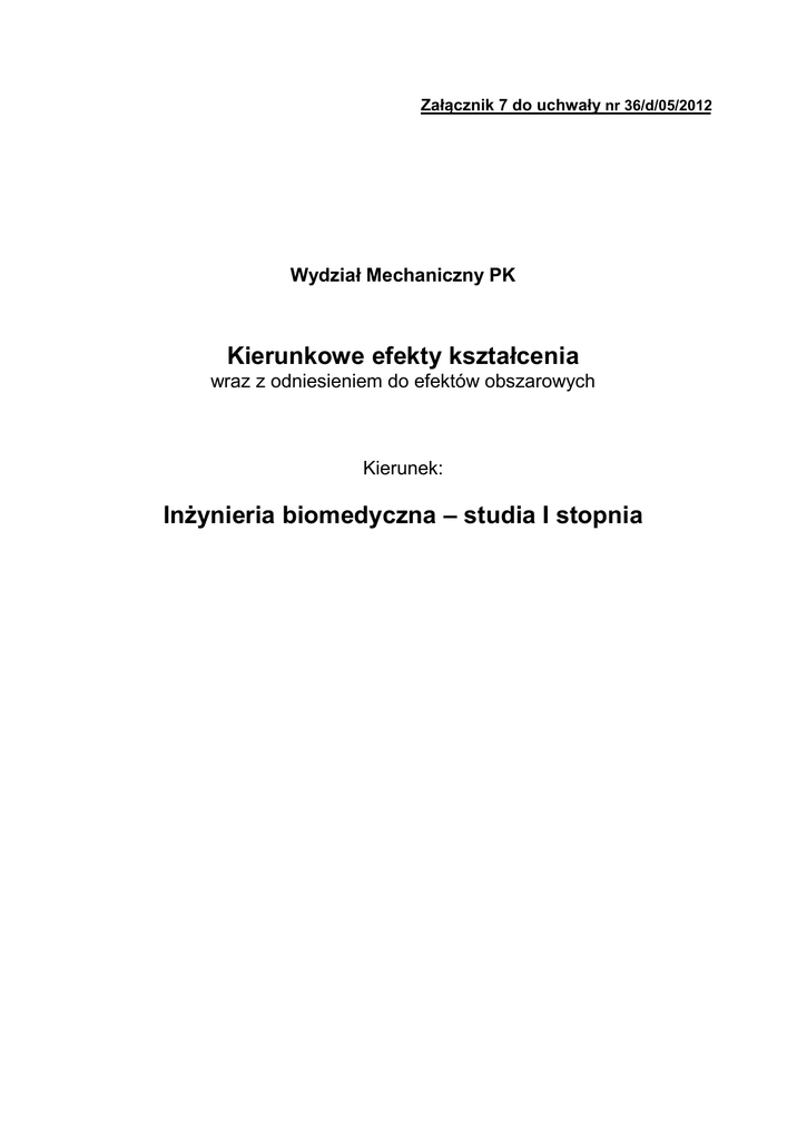 Kierunkowe efekty kształcenia Inżynieria biomedyczna – studia I