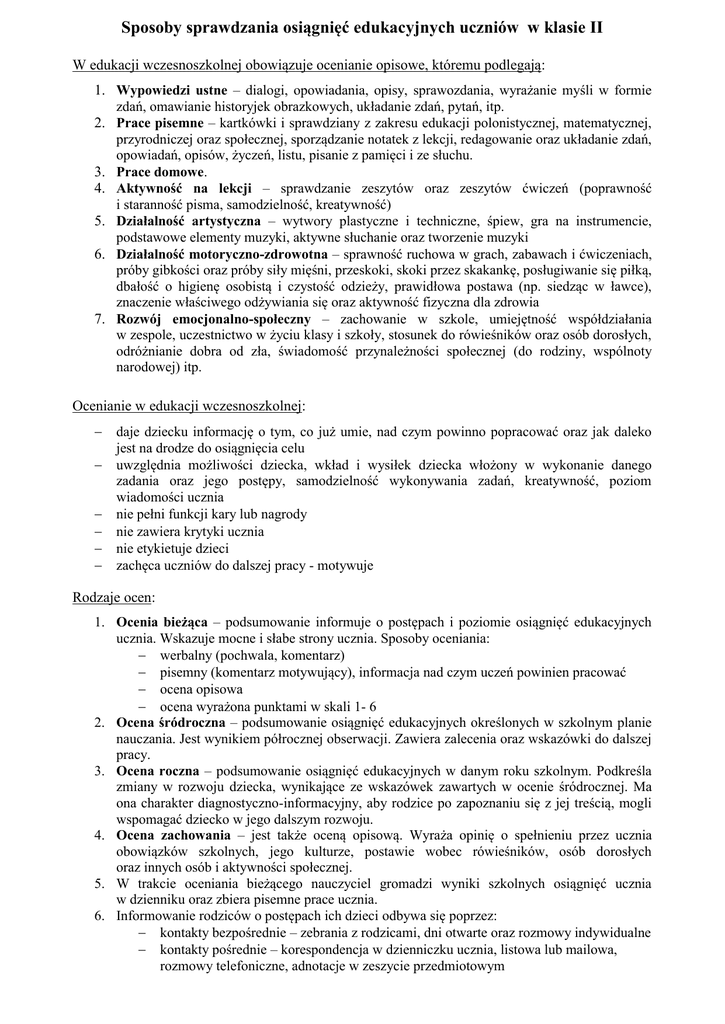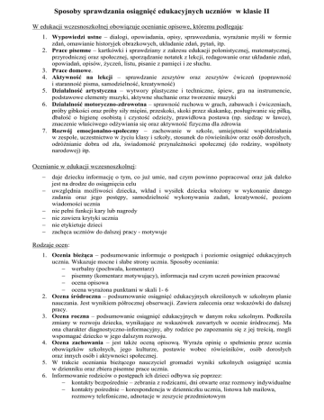 Sposoby sprawdzania osiągnięć edukacyjnych uczniów w klasie II