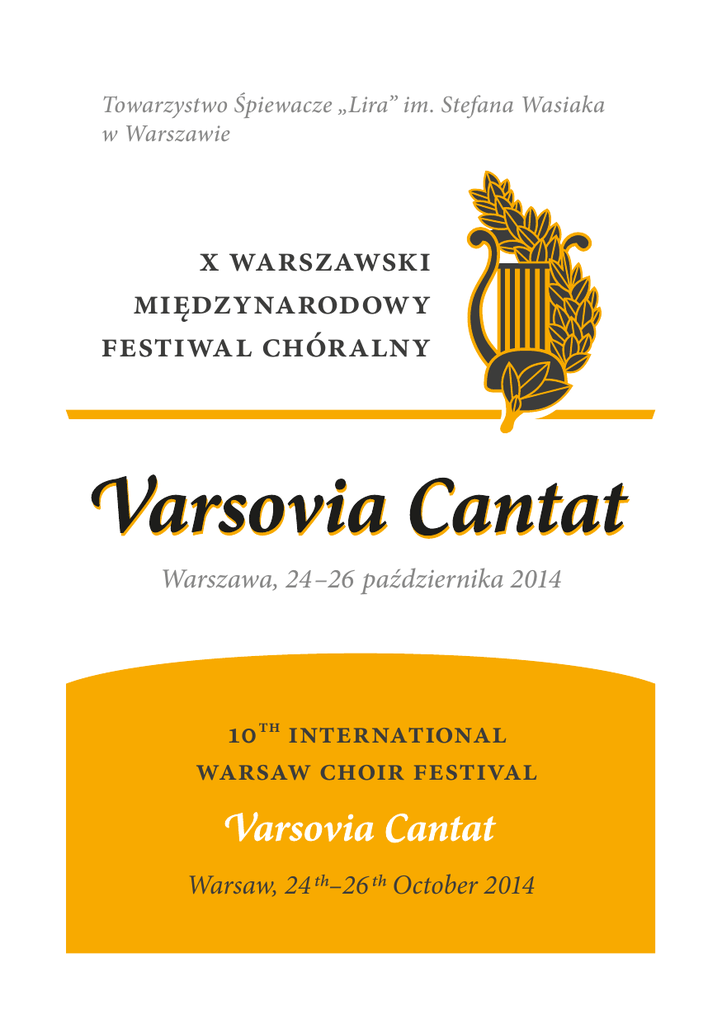 Towarzystwo Śpiewacze „Lira” im. Stefana Wasiaka w Warszawie x warszawski międzynarodowy festiwal chóralny Warszawa, 24–26 października 2014 10 th international warsaw choir festival Warsaw, 24th–26th October 2014 program 24.10.2014 piątek / friday Koncert / Concert 18.45 (po Mszy Św. o godz.18.00) Kościół Wszystkich Świętych Plac Grzybowski 3/5 Riga State Gymnasium No.2 – Elementary School Girls’ Choir (Ryga, Łotwa/Latvia) Academic Choir of Velenje (Velenje, Słowenia/Slovenia) Youth Cappella „Harmonia” (Gatchina, Rosja/Russia) Chór Dziecięcy „Harmonia” (Gatchina, Rosja/Russia) Gaudeamus Kórus (Veresegyház, Węgry/Hungary) 25.10.2014 sobota / saturday Otwarcie festiwalu oraz przesłuchania konkursowe / Opening and competition singing godz. 11.30–20.00 Sala Koncertowa Galerii Porczyńskich / Porczynski Concert Hall, pl. Bankowy 1 11.30 kategoria a / category a: chóry mieszane / mixed choirs Mixed Choir “Tume” (Tume, Łotwa/Latvia) Paduan Suara Mahasiswa Universitas Hasanudin (Makassar, Indonezja/Indonesia) Academic Choir of Velenje (Velenje, Słowenia/Slovenia) Chór Centrum Myśli Jana Pawła II (Warszawa, Poland) Technik Akademik (Trnawa, Słowacja/Slovakia) Chór Kameralny Akademii Muzycznej im. K. Szymanowskiego w Katowicach (Poland) Det Ny Kammerkor (Aarhus, Dania/Denmark) Academy Choir of the Basilica of the Sacred Heart of Jesus “Palma” (Zagrzeb, Chorwacja/Croatia) Przerwa do godziny 14.30 / Interval till 2.30 p.m VEF Culture Palace Mixed Choir “Dzīne” (Ryga, Łotwa/Latvia) Sopocki Chór Kameralny Continuo (Poland) Chamber Choir Cantate Domino of Kaunas Vytautas Magnus Assumption Church (Kaunas, Litwa/Lithuania) Youth Cappella „Harmonia” (Gatchina, Rosja/Russia) 15.30 kategoria b / category b: chóry o głosach równych / equal voices choirs 17.30 kategoria c / category c: chóry młodzieżowe / youth choirs kategoria d / category d: chóry dziecięce / children’s choirs Gaudeamus Kórus (Veresegyház, Węgry/Hungary) Broceni Cultural And Educational Center Choir “Laiksne” (Brocēni, Łotwa/Latvia) Pěvecké Sdružení Ostravských Učitelek (Ostrawa, Czechy/Czech Republic) Chór Męski “Echo” (Tczew, Poland) Górniczy Chór Męski (Lubin, Poland) Collegium Juvenum (Olsztyn, Poland) Kodály Zoltán Youth Mixed Choir (Debreczyn, Węgry/Hungary) Puellae et Pueri (Nowy Jiczyn, Czechy/Czech Republic) Sanocki Zespół Wokalny “Soul” (Poland) Chór I Liceum Ogólnokształcącego im. S. Konarskiego w Mielcu (Poland) Chór Dziecięcy “Kancona” (St. Petersburg, Rosja/Russia) Chór Dziecięcy “Cantiamo” (Leżajsk, Poland) Chór Dziecięcy Harmonia (Gatchina, Rosja/Russia) Chór Dziewczęcy Publicznego Gimnazjum Nr 4 im. Kard. Wyszyńskiego w Siedlcach (Poland) Riga State Gymnasium No.2 – Elementary School Girls’ Choir (Ryga, Łotwa/Latvia) 25.10.2014 sobota / saturday Koncerty / Concerts 18.30 Kościół Miłosierdzia Bożego ul. św. Faustyny Kowalskiej 1, Skierniewice Organizatorzy: Łódzki Dom Kultury, Samorządowa Szkoła Muzyczna II st. w Skierniewicach, Kościół Miłosierdzia Bożego w Skierniewicach Academic Choir of Velenje (Velenje, Słowenia/Slovenia) VEF Culture Palace Mixed Choir “Dzīne” (Ryga, Łotwa/Latvia) 19.00 Kościół pw. Św. Krzyża / Church of the Holy Cross, ul. Krakowskie Przedmieście 3 Sopocki Chór Kameralny Continuo (Poland) Chór Męski “Echo” (Tczew, Poland) Kodály Zoltán Youth Mixed Choir (Debreczyn, Węgry/Hungary) Puellae et Pueri (Nowy Jiczyn, Czechy/Czech Republic) Chór Dziecięcy “Kancona” (St. Petersburg, Rosja/Russia) 19.00 Kościół pw. Św. Anny / St. Anna church, ul. Krakowskie Przedmieście 68 (Stare Miasto / Old Town) Academy Choir of the Basilica of the Sacred Heart of Jesus “Palma” (Zagrzeb, Chorwacja/Croatia) Chamber Choir Cantate Domino of Kaunas Vytautas Magnus Assumption Church (Kaunas, Litwa/Lithuania) Broceni Cultural And Educational Center Choir “Laiksne” (Brocēni, Łotwa/Latvia) Collegium Juvenum (Olsztyn, Poland) 19.00 Kościół pw. Św. Antoniego Marii Zaccarii, ul. Jana III Sobieskiego 15 Paduan Suara Mahasiswa Universitas Hasanudin (Makassar, Indonezja/Indonesia) Pěvecké Sdružení Ostravských Učitelek (Ostrawa, Czechy/Czech Republic) Górniczy Chór Męski (Lubin, Poland) 19.15 Kościół Ojców Kapucynów pw. Przemienienia Pańskiego / Capuchin Church, ul. Miodowa 13 (Stare Miasto / Old Town) Det Ny Kammerkor (Aarhus, Dania/Denmark) Mixed Choir “Tume” (Tume, Łotwa/Latvia) Chór Kameralny Akademii Muzycznej im. K. Szymanowskiego w Katowicach (Poland) Technik Akademik (Trnawa, Słowacja/Slovakia) 26.10.2014 niedziela / sunday Koncert Galowy z wręczeniem nagród / Gala concert with prize giving ceremony godz. 10.30 Sala koncertowana Uniwersytetu Muzycznego Fryderyka Chopina/ Concert Hall of Chopin University of Music, ul. Okólnik 2 Koncerty / Concerts 18.00 Kościół pw. Św. Antoniego Marii Zaccarii, ul. Jana III Sobieskiego 15 VEF Culture Palace Mixed Choir “Dzīne” (Ryga, Łotwa/Latvia) na wszystkie koncerty i przesłuchania konkursowe wstęp wolny admission to all concerts and competition singing free jurorzy Prof. Romuald Twardowski, Przewodniczący Warszawa, Polska Prof. Romuald Twardowski, the head of the Jury Warsaw, Poland Kompozytor i pedagog; ur. 17 czerwca 1930 w Wilnie. Studia kompozytorskie ukończył w roku1960 w Państwowej Wyższej Szkole Muzycznej w Warszawie u Bolesława Woytowicza. W 1963 i 1966 studiował chorał gregoriański i polifonię średniowiecza pod kierunkiem Nadii Boulanger w Paryżu. Jest laureatem wielu nagród i wyróżnień. Utwór „Antifone per tre gruppi d’orchestra” (1961) zdobył w 1961 I nagrodę Konkursu Młodych Związku Kompozytorów Polskich, a w 1963 zajął II miejsce na Międzynarodowej Trybunie Kompozytorów UNESCO w Paryżu; w 1966 za Sonetti di Petrarca per tenore solo e due cori a cappella (1965) otrzymał I nagrodę na Międzynarodowym Konkursie Kompo