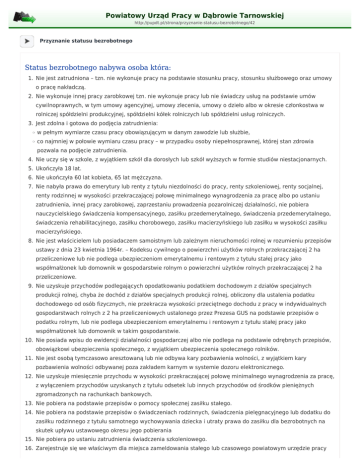 Powiatowy Urząd Pracy w Dąbrowie Tarnowskiej Status