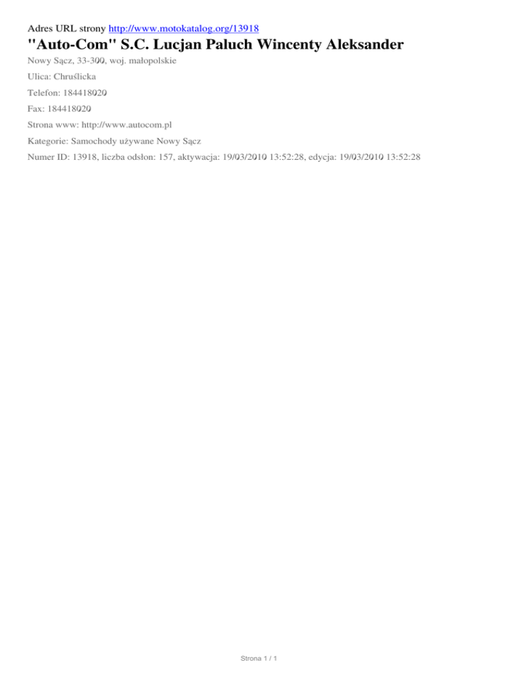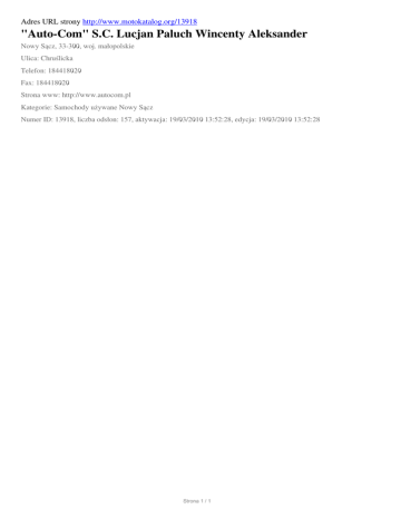 "Auto-Com" S.C. Lucjan Paluch Wincenty Aleksander, Nowy Sacz