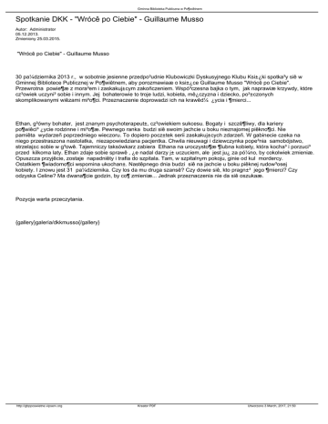 Spotkanie DKK - "Wrócê po Ciebie" - Guillaume Musso