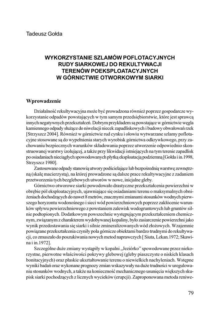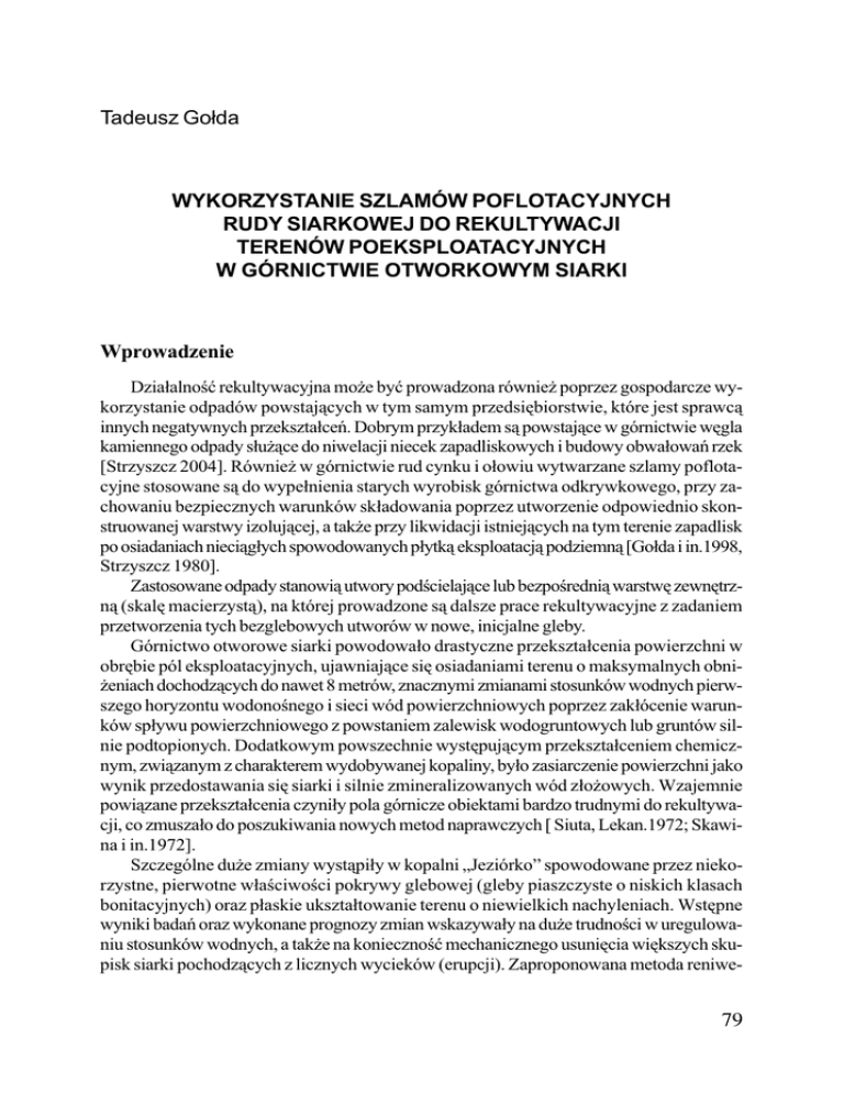 79 Tadeusz Gołda WYKORZYSTANIE SZLAMÓW