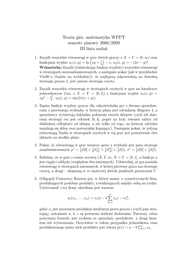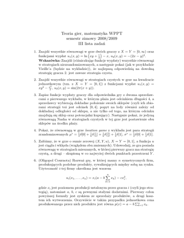Teoria gier, matematyka WPPT semestr zimowy 2008/2009 III lista