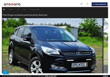 1 Osobowe Ford Kuga Ford Kuga II (2012-) Ford Kuga ecobost,automat,skóry,4x4,navi Do you need professional PDFs for your application? Try the PDFmyURL HTML to PDF API! H Dodaj ogłoszenie Ta strona używa plików cookies w celu realizacji usług i zgodnie z Polityką Plików Cookies OK 1 23456789 79 900 PLN Cena Brutto, Do negocjacji lub od 1228,68 PLN /mc Oblicz » Marka Ford Model Kuga Rok produkcji 2012 63 000 km Przebieg Dealer sprinter2 Pełna oferta dealera ; 513 Wyświetl numer Wyślij wiadomość < Do you need professional PDFs for your application? Try the PDFmyURL HTML to PDF API! < ul. Kościuszki 100 Żory woj. śląskie - 44-240 Żory, Śląskie Obserwuj Udostępnij ofertę QPRS Dodane 08:45, 5 Listopada 2015, id: 6001574641 Zgłoś naruszenie DANE TECHNICZNE Oferta od Kategoria Firmy Osobowe Marka Model Ford Kuga Wersja Rok produkcji II (2012-) 2012 Przebieg Rodzaj paliwa 63 000 km Benzyna Pojemność skokowa Moc 1 600 cm3 182 KM Skrzynia biegów Napęd Automatyczna hydrauliczna (klasyczna) 4x4 (dołączany automatycznie) Typ Liczba miejsc SUV 5 Liczba drzwi Kolor 5 Czarny Do you need professional PDFs for your application? Try the PDFmyURL HTML to PDF API! Metalik VAT marża Tak Tak Pierwsza rejestracji Pierwszy właściciel październik 2012 Tak Bezwypadkowy Serwisowany w ASO Tak Tak Stan Używane Zobacz raport niezawodności WYPOSAŻENIE ? ABS ? ASR (kontrola trakcji) ? CD ? Czujnik zmierzchu ? Elektrochromatyczne lusterko wsteczne ? Elektrycznie ustawiane fotele ? Gniazdo AUX ? Klimatyzacja dwustrefowa ? Łopatki zmiany biegów ? Podgrzewana przednia szyba ? Poduszka powietrzna chroniąca kolana ? Poduszki boczne przednie ? Radio fabryczne ? Światła przeciwmgielne ? Wielofunkcyjna kierownica ? Alarm ? Asystent pasa ruchu ? Centralny zamek ? Dach panoramiczny ? Elektryczne szyby przednie ? Elektrycznie ustawiane lusterka ? Gniazdo USB ? Komputer pokładowy ? MP3 ? Podgrzewane lusterka boczne ? Poduszka powietrzna kierowcy ? Poduszki boczne tylne ? Relingi dachowe ? Tapicerka skórzana ? Wspomaganie kierownicy Do you need professional PDFs for your application? Try the PDFmyURL HTML to PDF API! ? Wielofunkcyjna kierownica ? Alufelgi ? Bluetooth ? Czujnik deszczu ? Elektrochromatyczne lusterka boczne ? Elektryczne szyby tylne ? ESP (stabilizacja toru jazdy) ? Klimatyzacja automatyczna ? Kurtyny powietrzne ? Odtwarzacz DVD ? Podgrzewane przednie siedzenia ? Poduszka powietrzna pasażera ? Przyciemniane szyby ? Światła LED ? Tempomat ? Zmieniarka CD ? Wspomaganie kierownicy OPIS POJAZDU napęd 4x4 tapicerka skórzana siedzenia z pamięcią duży wyświetlacz LCD Microsoft nawigacja menu po Polsku podgrzewane siedzenia panoramiczny dach skrzynia bigów automatyczna atrakcyjny wygląd Do you need professional PDFs for your application? Try the PDFmyURL HTML to PDF API! tel. 513 - wyświetl numer - , 604 - wyświetl numer RATY ZAMIANA LEASING Informacje kontaktowe Dealer sprinter2 Pełna oferta tego dealera < ul. Kościuszki 100 Żory woj. śląskie - 44-240 Żory, Śląskie 4 Godziny otwarcia ; ; 513 Wyświetl numer 604 Wyświetl numer Do you need professional PDFs for your application? Try the PDFmyURL HTML to PDF API! ; 518 Wyświetl numer Wyślij wiadomość Twój e-mail Podaj swój nr telefonu Treść wiadomości 3 Dodaj załącznik Dopuszczalne typy plików: jpg, jpeg, png, doc, pdf, gif, zip, rar, tar, html, swf, txt, xls, docx, xlsx, odt Maksymalny rozmiar pliku to 2 MB Do you need professional PDFs for your application? Try the PDFmyURL HTML to PDF API! Wyślij New Ford Clearance Sale Ford Dealers are Slashing Prices. Get Your Low Price Quote! Podobne ogłoszenia 76 000 PLN Ford Escape Titanium ECOBOST 84 900 PLN Ford Kuga Escape 1.6 Ecoboost Titanium VAT 23% 79 900 PLN Ford Kuga Led / Titanium / Navi / DvD / 240PS Potrzebujesz pomocy? Biuro obsługi użytkownika Do you need professional PDFs for your application? Try the PDFmyURL HTML to PDF API! 77 700 PLN Ford Kuga 4 X 4 !! 2,0 T D C I I D E A L N A !! ; +48 61 630 60 06 [email protected] (od pn. do pt. w godz. 09:00 - 17:00) OTOMOTO Usługi i narzędzia Przydatne informacje Pomoc Umowa kupna sprzedaży Cennik ogłoszeń Kontakt Testy samochodów Reklama Opinie o samochodach Biuro prasowe Mapa kategorii Polityka prywatności Mapa miejscowości Regulamin OTOMOTO Regulamin dla klientów biznesowych Nasze aplikacje w Twoim telefonie: Darmowa aplikacja na Twój telefon Do you need professional PDFs for your application? Try the PDFmyURL HTML to PDF API!