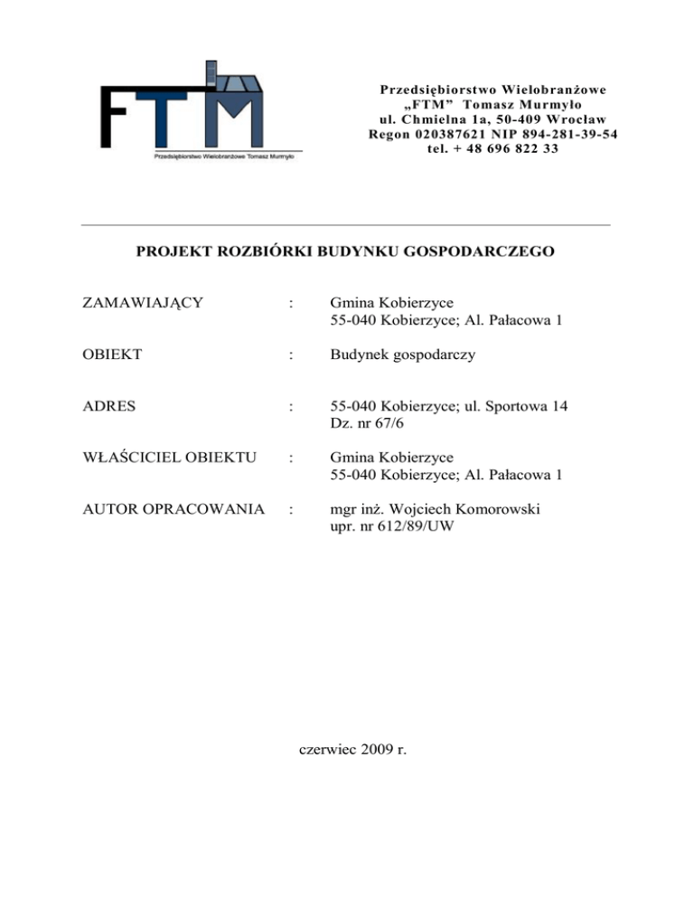 Projekt rozbiórki budynku gospodarczego, ul