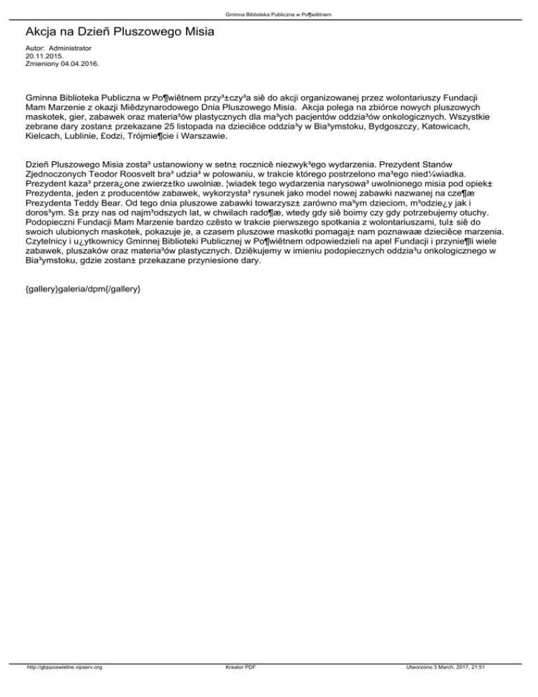 Akcja na Dzień Pluszowego Misia - Gminna Biblioteka Publiczna w