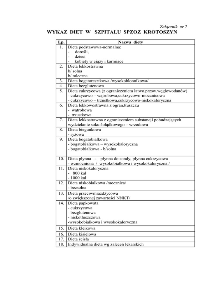 WYKAZ DIET W SZPITALU SPZOZ KROTOSZYN