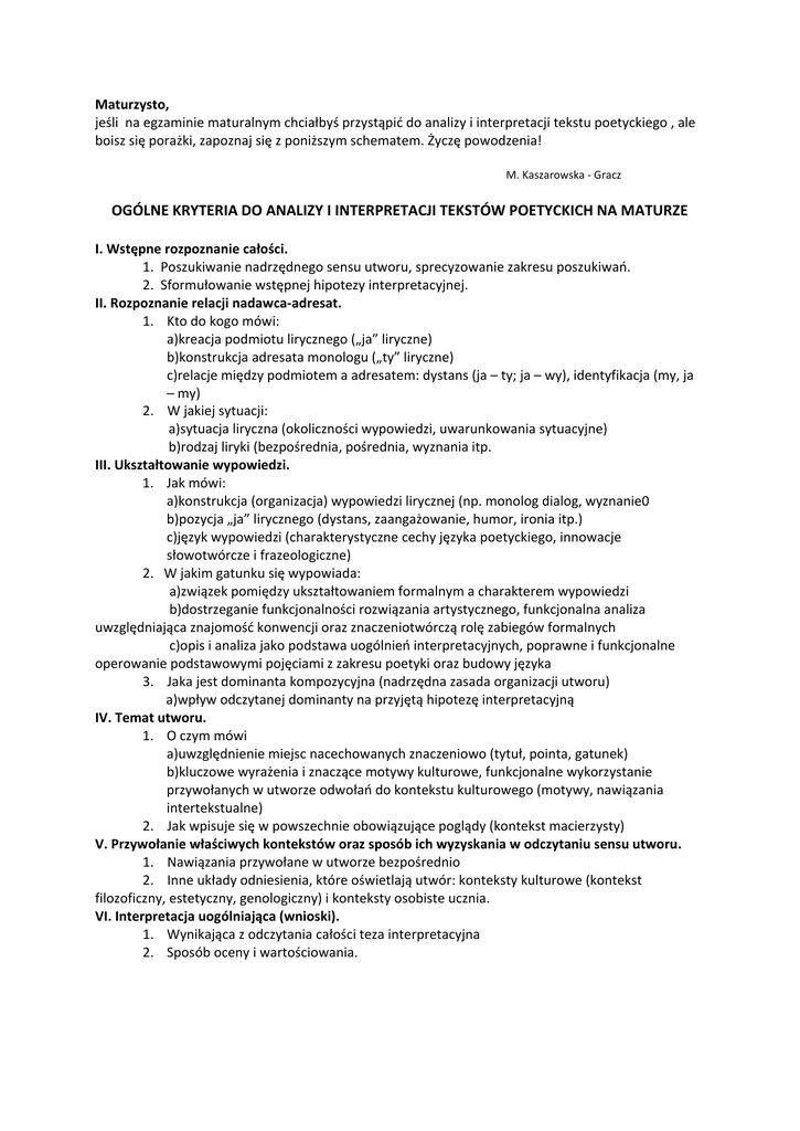 ogólne kryteria do analizy i interpretacji tekstów poetyckich na maturze