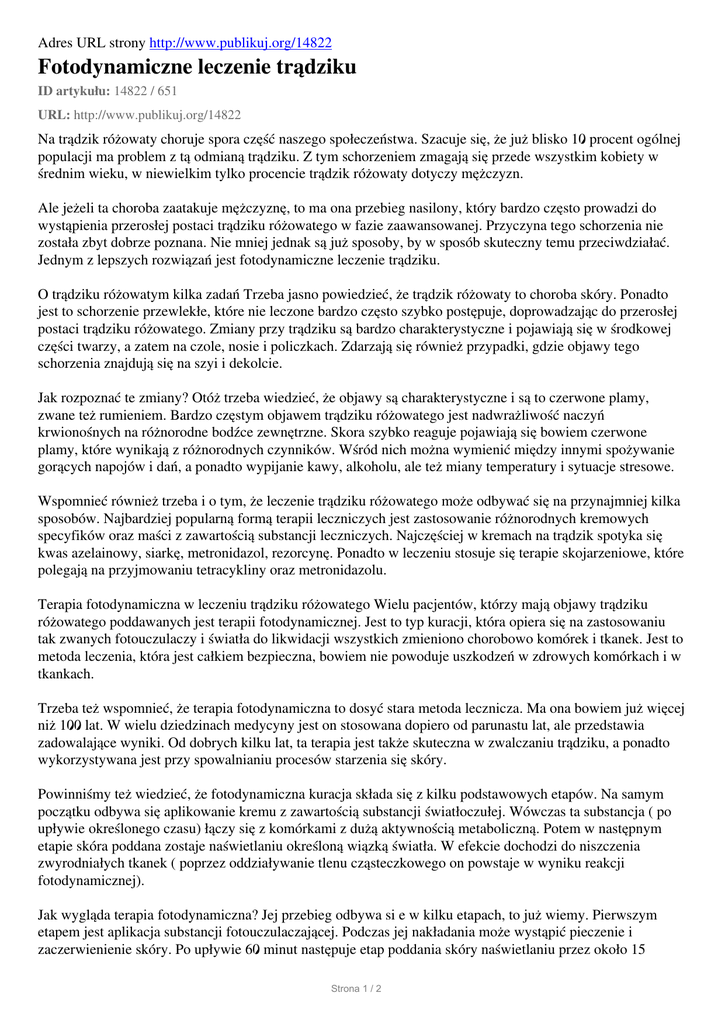Fotodynamiczne leczenie tradziku, uroda, zdrowie i