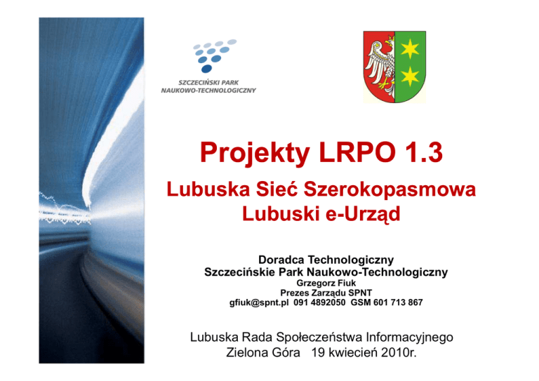 Projekty LRPO 1.3 Lubuska Sieć Szerokopasmowa Lubuski ee-Urząd Doradca Technologiczny Szczecińskie Park Naukowo-Technologiczny Grzegorz Fiuk Prezes Zarządu SPNT [email protected] 091 4892050 GSM 601 713 867 Lubuska Rada Społeczeństwa Informacyjnego Zielona Góra 19 kwiecień 2010r. Omawiana tematyka Przedstawienie aktualnego stanu prac projektu Lubuski e-Urząd (wyniki ankiet w JST, harmonogram prac, wstępny kosztorys realizacji projektu), Rozporządzenie Ministra Rozwoju Regionalnego z dnia 7 grudnia 2009r. w sprawie udzielenia pomocy na inwestycje w zakresie: energetyki, infrastruktury telekomunikacyjnej w ramach regionalnych programów operacyjnych, Wpływ powyŜszego rozporządzenia na wybór koncepcji realizacji projektu Lubuska Sieć Szerokopasmowa, model Partnerstwa Publiczno – Prywatnego Lubuski ee-Urząd e-ADMINISTRACJA komponent regionalny • portal regionalny i serwisy informacyjne – treści cyfrowe, standaryzacja informacji, • regionalna platforma komunikacji elektronicznej (RPKE) zintegrowana z ePUAP – zakup oprogramowania dla urzędu i jego jednostek podległych, elektroniczny obieg dokumentów w wersji WWW, archiwum elektroniczne, podpisy elektroniczny, elektroniczna skrzynka podawcza, jednolite formularze, • Biuletyn Informacji Publicznej • inne regionalne elementy (np. system map cyfrowych GIS z portalem WWW) Regionalna platforma zintegrowana z ePUAP • zakup i wdroŜenie oprogramowania oraz/lub licencji: elektroniczny obieg dokumentów, elektroniczna skrzynka podawcza, archiwum elektroniczne, podpisy kwalifikowane lub inne formy podpisu/ certyfikatu cyfrowego (np. zaufany profil ePUAP, podpis zaawansowany) • opracowanie i wdroŜenie jednolitych wzorów formularzy elektronicznych dla wszystkich partnerów projektu oraz jednostek podległych (oświata, przedsiębiorstwa komunalne, jednostki kultury, sportu etc.) oraz procedur realizacji spraw elektronicznych we wszystkich jednostkach uczestniczących w projekcie • zakup i wdroŜenie oprogramowania umoŜliwiającego gromadzenie, analizę oraz wymianę danych pomiędzy JST, a podległymi jednostkami budŜetowymi, placówkami oświat. Infrastruktura techniczna dla warstwy regionalnej Zakup infrastruktury technicznej dla poziomu regionalnego, niezbędna dla funkcjonowania portali i systemów wspólnych umieszczona w centralnej lokalizacji z moŜliwością wirtualizacji: • • • • • • • serwer klasy blade w szafach rack, macierz dyskowa urządzenia do archiwizacji, urządzenia aktywne, UPS, kontrola dostępu i monitoring, zdublowane łącza dostępowe do Internetu od róŜnych operatorów, itp.). system bezpiecznej transmisji między JST a poziomem regionalnym e-ADMINISTRACJA komponent lokalny 1. Rozszerzony elektroniczny obieg dokumentów dla urzędu i podległych jednostek lub rozbudowa obecnego systemu, 2. System Back-Office - wdroŜenie systemu zintegrowanego (program finansowo - księgowy, środki trwałe, planowanie budŜetu JST, rozliczenia budŜetowe, gospodarka mieniem komunalnym, ewidencja działalności gospodarczej, ewidencja podmiotów gosp. wg KRS, ewidencja ludności, koncesje alkoholowe, ochrona środowiska – rejestr dokumentów, świadczenia rodzinne, podatki od nieruchomości, gruntów, kadry-płace, opłaty parkingowe, itp.), 3. Infrastruktura techniczna - serwery, komputery, drukarki, urządzenia sieciowe, doposaŜenie PIAP, 4. Inne moŜliwe zadania poziomu lokalnego: • • • • • dedykowane programy, aplikacje bądź systemy, indywidualne usługi elektroniczne, punkt dostępu do Internetu, lokalne treści cyfrowe, inne. Inwentaryzacja w JST (1) • wstępna analizie stanu obecnego stanu informatyzacji urzędów gmin i powiatów oraz ich infrastruktury niezbędnej do świadczenia usług elektronicznych, • analizie potrzeb urzędów gmin i powiatów oraz ich infrastruktury niezbędnej do świadczenia usług elektronicznych, • szacunkowe określenie kosztów projektu, • zebrania niezbędnych informacji koniecznych do przygotowania Studium Wykonalności i innych dokumentach niezbędnych do podpisania umowy o dofinansowanie z LRPO. Inwentaryzacja w JST (2) Ilość w sztukach 12000 10696 10000 8000 6000 4141 4084 4000 1777 2000 0 351 343 0 System Zintegr. Zarządzania Podpis Kwal. Elektr. Obieg Dokumentów Sprzęt Komputerowy Oprogramowanie Infrastr. sieciowa RAZEM Inwentaryzacja w JST (3) SUMA w PLN 14 623 318 zł 16 000 000 zł 14 000 000 zł 12 000 000 zł 10 000 000 zł 8 000 000 zł 5 192 100 zł 4 956 168 zł 6 000 000 zł 4 000 000 zł 2 000 000 zł 2 826 800 zł 786 000 zł 862 250 zł 0 0 zł System Zintegr. Zarządzania Podpis Kwal. Elektr. Obieg Dokumentów Sprzęt Komputerowy Oprogramowanie Infrastr. sieciowa RAZEM Harmonogram ee-Urząd • przystąpienie JST do projektu – umowa i zabezpieczenie współfinansowania - 30 czerwiec 2010r, • opracowanie Studium Wykonalności i załączników - 30 czerwiec 2010r, • przetarg i SIWZ na wybór aplikacji, usług i dostawę sprzętu - 31 lipiec 2010r., • przetarg i SIWZ na wybór inŜyniera projektu 31 lipiec 2010r. • Rozpoczęcie wdroŜenia – początek 2011r. Współfinansowanie ee-Urząd Cześć wspólna (regionalna) – koszty inwestycji + prowadzenie projektu: • Wszyscy uczestnicy (min. 15% ~ 2 mln zł): • Urząd Marszałkowski, • gminy (wg klucza ilości mieszkańców), • powiaty (wg klucza ilości mieszkańców), Część indywidualna: • kaŜdy z uczestników w wysokości min. 15% kosztów przypadającą na część lokalną, Eksploatacja ee-Urząd Warianty zarządzania e-Urząd po okresie trwałości i pokrywanie kosztów eksploatacji: I. całkowicie Urząd Marszałkowski (Lider), II. rozłoŜony na wszystkich uczestników wg klucza podziału (wnoszony do Lidera), III. organizacja utworzona do eksploatacji (związek celowy, stowarzyszenie, podmiot gospodarczy) Rozporządzenie MRR z dnia 7.12.2009r. dot. pomocy na infrastrukturę telekomunikacyjną w ramach RPO (D.U. 214 poz. 1661)