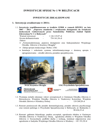 INWESTYCJE SPZOZ Nr 1 W BEŁŻYCACH