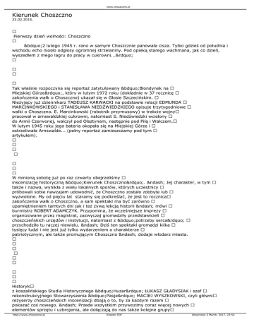 pociąg pancerny, a wokół setki pijanych w sztok „trupich główek”. Nie zwrócili jednak na mnie uwagi, przemknąłem do Zamęcina. To zaledwie 4 kilometry na południe od miasta”. http://www.choszczno.pl