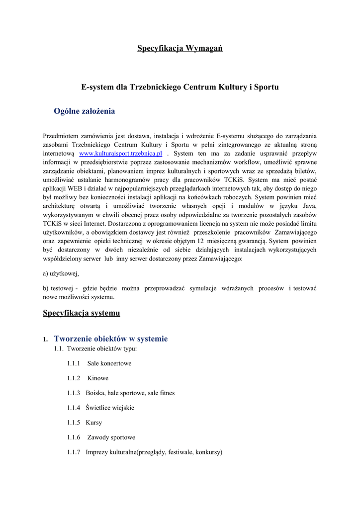 Specyfikacja Wymagań E-system dla Trzebnickiego Centrum Kultury
