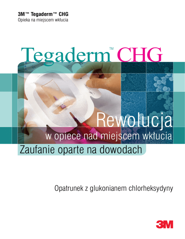 3M™ Tegaderm™ CHG Opieka na miejscem wkłucia Tegaderm CHG TM Rewolucja w opiece nad miejscem wkłucia Zaufanie oparte na dowodach w opiece Opatrunek z glukonianem chlorheksydyny 3M™ Tegaderm™ CHG Flora bakteryjna skóry pacjenta to podstawowy czynnik etiologiczny zakażeń odcewnikowych Zakażenia odcewnikowe stanowią poważny problem niemalże w każdym szpitalu. Odgrywają znaczącą rolę pod względem śmiertelności pacjentów jak i w podwyższaniu kosztów opieki zdrowotnej. Badania wykazują, że zakażenia odcewnikowe wydłużają hospitalizację chorego przeciętnie o 20 dni i zwiększają koszt leczenia 1 pacjenta o 3000 euro. (2) 30-40% wszystkich zakażeń szpitalnych to zakażenia krwi (3), które związane są z najwyższą śmiertelnością pacjentów (25%). (4) Częstość występowania zakażeń odcewnikowych różni się w poszczególnych krajach, szpitalach, oddziałach. Badania wykazują bardzo wysoki odsetek zakażeń odcewnikowych sięgający >11%, od 7 do 9 przypadków / 1000 kateterodni. (5; 6) inne 14% cewniki obwodowe 7% układ oddechowy 6% cewniki centralne 31% układ moczowy 10% 38% miejsce operowane 5% nieznane 27% Ref: PHLS (2000), www.phls.co.uk Wiele szpitali w Polsce twierdzi, że zakażenia związane z cewnikowaniem naczyń krwionośnych nie stanowią problemu w ich przypadku. Munoz (8) prowadził badania nad zakażeniami odcewnikowymi w 107 szpitalach w 21 krajach europejskich. Częstość występowania zakażeń wynosiła 1.02/1000 przyjęć do szpitala. Odsetek występowania zakażeń u pacjentów z krajów Unii Europejskiej był 5-krotnie wyższy niż u pacjentów z krajów nie należących do UE (1.55 vs. 0.33/1000 przyjęć do szpitala). To badanie jasno wskazuje na możliwość niewłaściwego raportowania i ukrywania zakażeń odcewnikowych w niektórych krajach. Redukcja kolonizacji bakteryjnej to prz Opatrunek do mocowania i zabezpieczania wkłuć donaczyniowych Glukonian chlorheksydyny – skuteczność kliniczna potwierdzona w wieloletnim stosowaniu Fizjologiczna flora bakteryjna skóry pacjenta jest złożona i uznawana za główny czynnik ryzyka i etiologiczny zakażeń odcewnikowych. Odporny na działanie materii organicznej Glukonian chlorheksydyny jest doskonale poznanym środkiem antyseptycznym o szerokim spektrum działania bakterio- i grzybobójczego. To co szczególnie ważne to fakt, że CHG jest praktycznie niewrażliwy na obecność materii organicznej, w tym krwi, która niweluje działanie innych środków antyseptycznych. Dzięki temu glukonian chlorheksydyny to najlepszy środek antyseptyczny stosowany w opiece nad miejscem wkłucia. (7) Skuteczniejszy niż roztwór powidonu jodyny Badania wykazują, że 2% roztwór glukonianu chlorheksydyny jest bardziej efektywny w obniżeniu zakażeń niż 70% alkohol i 10% powidon jodyny. (11) Szerokie spektrum bakteriobójcze Większość zakażeń odcewnikowych (około 60%) to zakażenia wywołane przez bakterie Gram (+), które stanowią większość stałej flory bakteryjnej skóry pacjentów (głównie koagulazo-ujemne staphylococci i Staphylococcus aureus). Przykładowe spektrum działania bakteriobójczego opatrunku Tegaderm CHG: • Staphylococcus epidermidis • Acinetobacter baumanii • Staphylococcus aureus • Serratia marcescens • Enterococcus faecium • Eschericha coli • Enterococcus faecalis • Enterobacter cloacae • Klebsiella pneumoniae • Candida albicans • Pseudomonas aeruginosa skóry zyszłość zapobiegania zakażeniom odcewnikowym 3M™ Tegaderm™ CHG Unikalne połączenie właściwości barierowych i działania bakteriobójczego Obniża kolonizację bakteryjną skóry Innowacyjny przylepny hydrożel z 2% glukonianem chlorheksydyny zapewnia silne działanie bakteriobójcze, które trwa przez cały czas stosowania opatrunku na skórze. Przeprowadzone badania demonstrują wysoką efektywność opatrunku Tegaderm CHG pod względem redukcji kolonizacji bakteryjnej skóry. Tegaderm™ CHG Gąbka z CHG Półprzepuszczalny opatrunek kontrolny 4.0 Log koloni bakteryjnych / cm2 3.5 Wyjściowa flora bakteryjna 3.0 2.5 2.0 1.5 Flora bakteryjna po dezynfekcji 1.0 0.5 0.0 Grupa kontrolna Po dezynfekcji (bez dezynfekcji skóry skóry) Dzień 7 Dzień 10 Zapewnia kontrolę wizualną wkłucia Zarówno folia Tegaderm jak i żel CHG są przezroczyste, co zgodnie z wytycznymi CDC (Centrum Kontroli Chorób, USA) i ICNA (Stowarzyszenie Pielęgniarek Epidemiologicznych, Wielka Brytania) umożliwia ciągłą kontrolę wizualną miejsca wkłucia, bez potrzeby odklejania opatrunku. Umożliwia rzadką wymianę opatrunku Żel z glukonianem chlorheksydyny zapewnia ciągłe działanie bakteriobójcze przez 10 dni. Jest to idealny opatrunek do mocowania i zabezpieczania cewników centralnych, obwodowo wprowadzanych cewników centralnych, cewników dotętniczych i portów dożylnych. Zapewnia wysoką absorpcję krwi i wysięku Hydrożel CHG ma właściwości absorpcyjne. W przypadku krwawienia czy sączenia w miejscu wprowadzenia cewnika płyny zostaną wchłonięte przez żel, bez wpływu na przezierność i działanie bakteriobójcze żelu. Rewolucja w opiece Opatrunek do mocowania i zabezpieczania wkłuć donaczyniowych Obniżenie ryzyka zakażeń odcewnikowych Innowacyjny przylepny hydrożel z glukonianem chlorheksydyny Przezroczysty opatrunek Tegaderm • Miękki, doskonale dostosowujący się do kształtu skóry oraz cewnika • Wodoszczelny opatrunek zapewnia barierę przed zakażeniem • Zapewnia ciągłe i równomierne wydzielanie chlorheksydyny o działaniu bakteriobójczym, które nie może zostać zahamowane przez żadne czynniki • Dodatkowe elementy wzmacniające z włókniny zwiększają stabilizację kaniuli/cewnika • Hipoalergiczny klej, bez zawartości lateksu, minimalizuje możliwość podrażnienia skóry • Przezroczysty opatrunek eliminuje niepotrzebne zmiany opatrunku nad miejscem wkłucia 3M™ Tegaderm™ CHG Ciągła i równomierna aktywność 