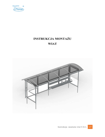 INSTRUKCJA MONTAŻU WIAT Instrukcja montażu wiat I 22.1. 1/7 1. Przedmiot instrukcji Przedmiotem niniejszej instrukcji montażu wiat są wymagania dotyczące wykonania i odbioru robót związanych z posadowieniem wiat. 2. Zakres zastosowania Instrukcja montażu wiat jest dokumentem wskazującym wytyczne do przeprowadzenia i odbioru robót budowlanych związanych z instalacją wiat. 3. Charakterystyka konstrukcji Konstrukcje szkieletowe wiat najczęściej są nie zamknięte, czyli nie posiadają czterech ścian (zazwyczaj wyposażone w trzy ściany, ale mogą również występować wersje bez ścian, z jedną, lub z dwoma ścianami). Ściany te nie spełniają wymogów izolacji termicznej, a ich zadanie sprowadza się do osłony podróżnych przed opadami atmosferycznymi i podmuchami wiatru. Ściany wiat bywają również wykorzystywane jako podstawa dla nośników treści informacyjnej i reklamowej. Ściany boczne mogą być pełne (o szerokości zbliżonej do bocznego wymiaru dachu), cofnięte (ścianka jest węższa niż szerokość dachu), trójdzielne (ścianka jest podzielna na trzy części), przystosowane do połączenia z kioskiem (powstaje wówczas tak zwany zestaw kiosko - przystanku), lub przystosowane do umieszczenia w niej gabloty o charakterze reklamowym. Gabloty reklamowe można umieszczać w konstrukcji wiat zarówno w ściankach bocznych, jak i tylnych. 4. Rodzaje wiat Wiaty opisują następujące parametry: - wymiary gabarytowe (długość x szerokość x wysokość) [mm], - kształt dachu (dach płaski, dach łukowy, inny), - wypełnienie ścian bocznych, tylnych i dachu (szkło hartowane lub bezpieczne, poliwęglan lity lub komorowy, blacha trapezowa, inne), - ilość modułów, - materiał: stal ocynkowana ogniowo, stal nierdzewna, aluminium. 5. Fundament Fundamenty dla zamocowania konstrukcji wiat mogą być wykonane jako: - z betonu wykonywanego „na mokro”, - z betonu zbrojonego, Instrukcja montażu wiat I 22.1. 2/7 - inne rozwiązania zaakceptowane przez Kierownika Projektu. Fundamenty pod konstrukcję należy wykonać z betonu lub z betonu zbrojonego klasy, co najmniej C16/20 wg PN-EN 206-1:2000. Zbrojenia stalowe należy wykonać zgodnie z normą PN-B-03264:1984. Wykonanie i osadzenie kotew fundamentowych należy wykonać zgodnie z normą PN-B-03215:1998. Posadowienie fundamentów należy wykonać na głębokości poniżej przemarzania gruntu. Stabilność wiaty powinna zostać potwierdzona obliczeniami statycznymi. Niektóre konstrukcje, zwłaszcza te pozbawione ścian bocznych, wymagają zastosowania płyt fundamentowych. W procesie wyboru najodpowiedniejszej formy posadowienia może być wymagana informacja na temat strefy wiatrowej, do której przyporządkowana jest dana lokalizacja. 6. Sposoby mocowania Wyróżniamy dwa sposoby mocowań wiat do podłoża za pomocą: - kotew prostopadłych do drogi, - betonowania bezpośrednio w gruncie. Mocowanie wiat do podłoża za pomocą kotew prostopadłych do podłoża: Niniejsza instrukcja tyczy się podłoża litego tzn. betonowego, asfaltowego lub wykonanych szklanek betonowych. Instrukcja montażu wiat I 22.1. 3/7 Mocowanie wiat do podłoża za pomocą betonowania bezpośrednio w gruncie: Uwaga: głębokość posadowienia równa głębokości przemarzania gruntu. Beton powinien mieć wytrzymałość określoną klasą w dokumentacji projektowej, lecz nie niższą niż klasa C 16/20, lub zgodnie ze wskazaniami inżyniera. Minimalne wymiary fundamentu to 200mm x 200mm x 800mm. Noga wiaty wpuszczona w fundament na głębokość 500mm. Element kotwiący winien być wyposażony w wąsy uniemożliwiające wyrwanie elementu. 7. Transport Wiaty przewozić środkami transportu, w warunkach zabezpieczających je przed uszkodzeniami mechanicznymi. W przypadku załadowania na środek transportu wiatę należy ją zabezpieczyć przed przemieszczaniem. Przy transporcie przedmiotów ocynkowanych lub/i malowanych zaleca się ostrożność, ze względu na podatność powłok na uszkodzenia mechaniczne występujące przy uderzeniach. Łączniki, śruby, wkręty, nakrętki itp. powinno się przewozić w warunkach zabezpieczających wyroby przed korozją i uszkodzeniami mechanicznymi. W przypadku stosowania do transportu palet, opakowania powinny być zabezpieczone przed przemieszczaniem się, np. za pomocą taśmy stalowej lub plastikowej lub folii termokurczliwej. Instrukcja montażu wiat I 22.1. 4/7 8. Wytyczne montażowe Montaż wiaty uzależniony jest od jej typu oraz zastosowanych rozwiązań konstrukcyjnych zawartych w szczegółowej dokumentacji projektowej. Montaż wiaty przeprowadzać wg otrzymanej dokumentacji montażowej, która zawiera: - rysunek złożeniowy wiaty wraz z listą materiałową (BOM), - rysunek złożeniowy wiaty wraz z wymiarami gabarytowymi, - rysunek przedstawiający rozbicie wiaty na części i zespoły wchodzące w jej skład, z pokazaniem docelowego miejsca lokalizacji elementów. Rysunek przedstawiający złożenie wiaty wraz z listą materiałową (BOM). Instrukcja montażu wiat I 22.1. 5/7 Rysunek przedstawiający złożeniowy wiaty wraz z wymiarami gabarytowymi. Rysunek przedstawiający rozbicie wiaty na części i zespoły. Instrukcja montażu wiat I 22.1. 6/7 Na rysunku przestawiającym rozbicie wiaty będą zawarte następujące informacje: A. Sposób umiejscowienia elementów w wiacie. B. Sposób mocowania ścian tylnych i bocznych. Materiałem na ściany może być: szkło hartowane lub bezpieczne, poliwęglan lity lub komorowy, blacha trapezowa. Wypełnienie tylne oraz boczne (za wyjątkiem blachy trapezowej) mocowane jest w ścianach wiaty przy użyciu elementów mocujących, łączonych do ścian za pomocą blachowkrętów lub nitów. Natomiast blacha trapezowa montowana jest bezpośrednio do konstrukcji wiaty za pomocą blachowkrętów lub nitów. C. Sposób mocowania dachu. Materiałem na dach może być: szkło hartowane lub bezpieczne, poliwęglan lity lub komorowy, blacha trapez
