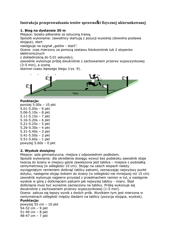 Instrukcja przeprowadzania testów sprawności fizycznej