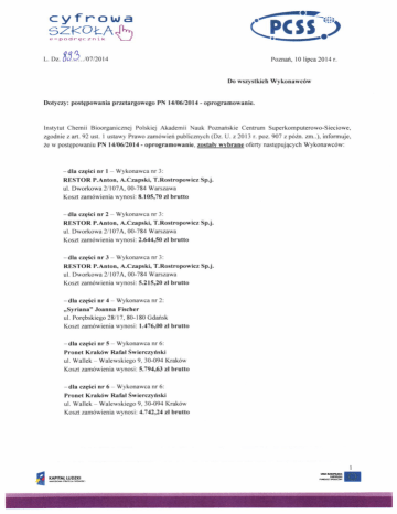 Dotyczy: podQpowrnir przct{rgowcgo PN l4{}6n014 - oprognmowanic.