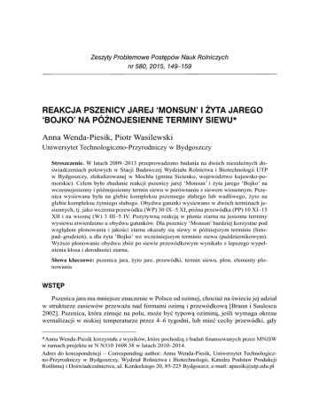 `Monsun` i żyta jarego `Bojko` - Zeszyty Problemowe Postępów Nauk