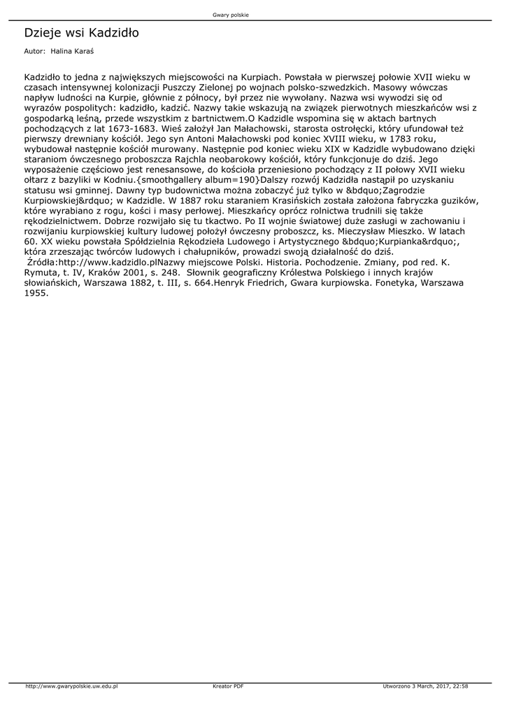 słowiańskich, Warszawa 1882, t. III, s. 664.Henryk Friedrich, Gwara kurpiowska. Fonetyka, Warszawa