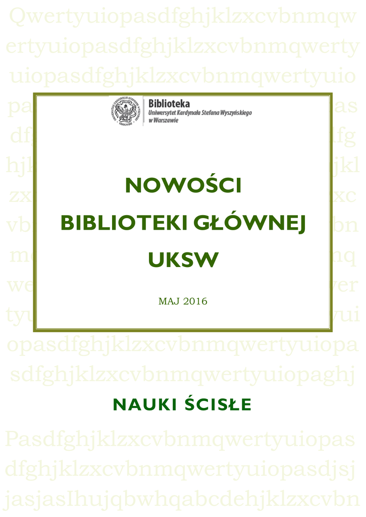 Qwertyuiopasdfghjklzxcvbnmqw ertyuiopasdfghjklzxcvbnmqwerty uiopasdfghjklzxcvbnmqwertyuio pasdfghjklzxcvbnmqwertyuiopas dfghjklzxcvbnmqwertyuiopasdfg hjklzxcvbnmqwertyuiopasdfghjkl NOWOŚCI zxcvbnmqwertyuiopasdfghjklzxc BIBLIOTEKI GŁÓWNEJ vbnmqwertyuiopasdfghjklzxcvbn mqwertyuiopasdfghjklzxcvbnmq UKSW wertyuiopasdfghjklzxcvbnmqwer MAJ 2016 tyuiopasdfghjklzxcvbnmqwertyui opasdfghjklzxcvbnmqwertyuiopa sdfghjklzxcvbnmqwertyuiopaghj NAUKI ŚCISŁE Pasdfghjklzxcvbnmqwertyuiopas dfghjklzxcvbnmqwertyuiopasdjsj jasjasIhujqbwhqabcdehjklzxcvbn NAUKI ŚCISŁE maj 2016 INFORMATYKA 1 SPINCZYK, DOMINIK. Text Mining : metody, narzędzia, zastosowania : wykorzystanie SAS Text Analytics / Dominik Spinczyk, Mariusz Dzieciątko. – Warszawa : Wydawnictwo Naukowe PWN, 2016. – XII, 204 s. : il. ; 24 cm. Bibliogr. s. 193-194. Indeks. ISBN 978-83-01-18510-7 Sygn.: 343994 TECHNIKA 2 MIODOWNIK, MARK (1969- ). W rzeczy samej : osobliwe historie wspaniałych materiałów, które nadają kształt naszemu światu / Mark Miodownik ; przekład Dariusz Żukowski. – Kraków : Karakter, 2016. – 291, [4] s. : il. ; 21 cm. Tyt. oryg.: Stuff matters : the strange stories of the marvellous materials that shape our man-made world – Bibliogr. s. 291-[292]. ISBN 978-83-65271-08-2 Sygn.: 167203 NOWE POZYCJE W KATALOGU