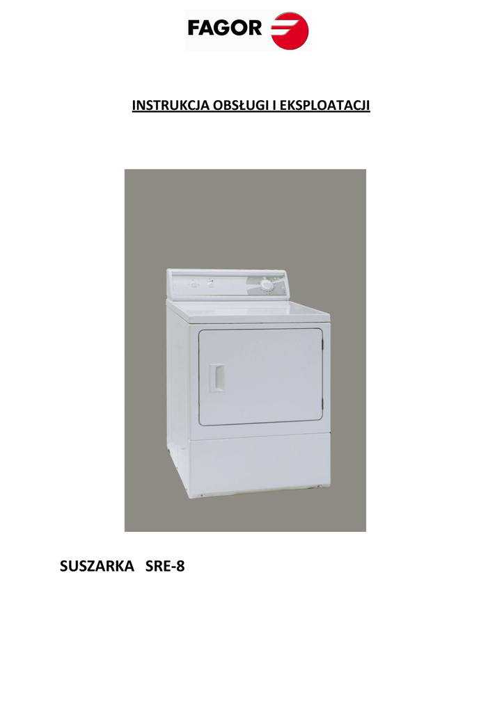 INSTRUKCJA OBSŁUGI I EKSPLOATACJI SUSZARKA SRE-8 OSTRZEŻENIE Przeczytaj ten podręcznik przed instalacją suszarki i jej użyciem. Trzymaj ten podręcznik w bezpiecznym miejscu dla użytku w przyszłości. Maszyna przeznaczona jest tylko do profesjonalnego suszenia materiałów tekstylnych po praniu w wodzie. W przypadku zauważenia zapachu gazu: (urządzenia gazowe) Zamknij główne zawór gazu i przewietrz pomieszczenie. Nie włączaj żadnego oświetlenia i nie podłączaj żądnych urządzeń elektrycznych. Nie używaj telefonu w tym samym pomieszczeniu. Nie pozostawiaj benzyny, ani innych palnych płynów lub gazów w pobliżu suszarki. Nie susz wyrobów, które były poddane działaniu lub wydzielają pary łatwopalnych substancji. Zawsze przestrzegaj wskazówek znajdujących się na etykietach lub metkach przymocowanych do materiałów, które mają być suszone. Nie pozostawiaj pracującej suszarki bez nadzoru. Nigdy nie pozwalaj na gromadzenie się włókien, pyłu, lub brudu dokoła maszyny. Istnieje niebezpieczeństwo zapalenia się w przypadku wyjmowania ładunku z maszyny przed zakończeniem cyklu suszenia, jeżeli wybrana została nadmiernie wysoka temperatura suszenia. W przypadku awarii zasilania zaleca się, aby drzwiczki suszarki były otwarte, aby uniknąć samozapłonu ładunku. Czynności konserwatorskie i instalacyjne powinny być wykonywane wyłącznie przez wykwalifikowanych techników serwisu. Po zakończeniu dnia pracy, a także przed zdjęciem jakichkolwiek osłon w celu czyszczenia, konserwacji lub testowania, wyłącz lub odłącz maszynę od sieci zasilającej. Zaleca się zainstalowanie kołnierzy z elastycznego materiału na wyjściu powietrza, aby uniknąć drgań powietrza, powodujących nadmiernie duży poziom hałasu. Producent zastrzega sobie prawo do wprowadzania modyfikacji konstrukcyjnych bez uprzedzenia. W przypadku instalacji urządzeń zasilanych gazem zastosuj się do obowiązujących przepisów, określających warunki instalacji urządzeń gazowych. Ważne: Urządzenie musi być eksploatowane i przechowywane w pomieszczeniach ogrzewanych w czasie zimy. Głównym wrogiem maszyny jest pył i włókna pochodzące z suszonych materiałów; maszyna i wszystkie jej części składowe muszą być wolne od gromadzących się włókien i pyłu, które mogłyby utrudniać ich pracę. Cyklicznie zaleca się generalne czyszczenie maszyny z użyciem odkurzacza. 1. OGÓLNE WŁAŚCIWOŚCI Nasze suszarki zaprojektowane zostały w celu spełnienia najostrzejszych wymagań działania, niezawodności i wydajności suszenia. Maszyna składa się z trzech części: korpusu, gdzie umieszczone jest grzanie, bębna w części środkowej oraz systemu odprowadzającego gorące powietrze w części dolnej. Obsługa urządzenia 1. Otwórz drzwi wsadowe i umieść we wnętrzu bębna wsad do suszenia. Obciążenie suszarki. pełne obciążenie suszarki (7,8 kg maksymalny ładunek mokrego wsadu do suszenia) 2. Zamknij drzwi wsadowe suszarki. 3. Ustaw temperaturę odpowiednią do suszonych materiałów. (Zawsze sprawdź zalecenia producenta materiału) 4. Wybór tkaniny / ustawienie temperatury 5. Uruchomienie suszarki Wybierz żadany cykl suszenia i naciśnij przycisk timera, aby rozpocząć suszenie 6. Wyjęcie prania Po upłynięciu nastawionego czasu będzie słyszalny sygnał dźwiękowy Wyjmij wsad z bębna. 7. Czyszczenie filtrów Zaleca się po każdym programie suszenia, usuniecie nagromadzonego pyłu z filtra 8. Sygnał końca cyklu pracy Możesz dokonać wyboru głośności sygnału końca operacji. KONSERWACJA Funkcjonowanie maszyny nie wymaga żadnej skomplikowanej konserwacji (napęd, wentylacja, ogrzewanie). Cała maszyna została zaprojektowana do ciągłej pracy bez konserwacji. Do czyszczenia zewnętrznych części maszyny używaj wilgotnej szmatki z nie rysującym powierzchni detergentem. Nigdy nie myj urządzenia wodą pod ciśnieniem. Naprawy i zgłoszenia awarii. WAŻNE: Wymiana jakichkolwiek części roboczych urządzenia, które mogłyby wpłynąć na bezpieczeństwo jego użytkowania, musi być każdorazowo przeprowadzana przez pracowników autoryzowanego serwisu sprzedawcy mających odpowiednie uprawnienia techniczne. W przypadku wymiany części roboczych należy sprawdzić, czy został zakręcony główny zawór gazu/pary i wyłączone zasilanie elektryczne. Zgłoszenia wszelkich usterek w działaniu urządzeń i awarii oraz wszelkie reklamacje należy niezwłocznie zgłaszać na adres podany w warunkach gwarancji. Wszelkie uszkodzenia mechaniczne, lub wynikłe z użytkowania urządzenia niezgodnie z instrukcją nie podlega gwarancji. W celu zapewnienia poprawnego i niezawodnego działania urządzenia, oraz dopełnienia warunków gwarancji, należy przynajmniej raz w roku przeprowadzić płatny przegląd techniczny urządzenia wraz z adnotacją o dacie wykonania przeglądu w karcie gwarancyjnej. WARUNKI GWARANCJI 1. Gwarancja na prawidłowe działanie urządzenia jest udzielana na okres 12 miesięcy. Okres gwarancyjny może być dłuższy (24 miesiące), jeżeli taki wpis został dokonany w zawartej pisemnej umowie sprzedaży indywidualnej lub przetargowej. Każdorazowo gwarancja 24 miesięczna jest uwarunkowana wykonaniem płatnego przeglądu serwisowego przed upływem roku eksploatacji. Użytkownik zgłasza chęć wykonanie przeglądu serwisowego. Nie wykonanie płatnego przeglądu, skutkuje zakończeniem gwarancji po upływie 12 miesięcy. Czas gwarancji jest liczony od daty faktury zakupu urządzenia, lub od daty podpisania przez uprawnionego technika protokołu uruchomienia nie później niż miesiąc od daty zakupu. 2. Urządzenia gazowe bezwzględnie przynajmniej raz w roku muszą by poddane płatnemu przeglądowi konserwacyjnemu, oraz próbie szczelności. 3. Producent (Dostawca) zobowiązuje się do bezpłatnego usunięcia usterek urządzenia w okresie ważności gwarancji, a wynikających z winy producenta. W przypadku braku części 