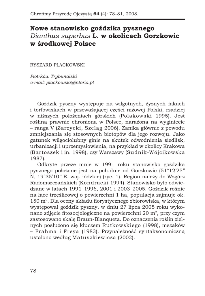 Nowe stanowisko goździka pysznego Dianthus superbus L