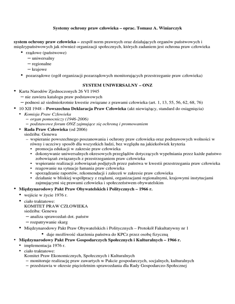Systemy ochrony praw człowieka – oprac. Tomasz A. Winiarczyk