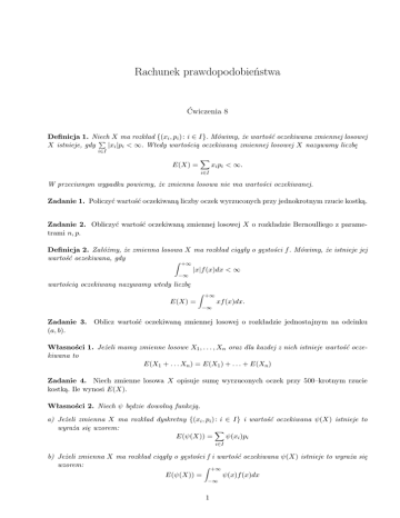 Definicja 1. Niech X ma rozkład {(xi , pi ) : i ∈ I}. Mówimy, że wartość oczekiwana zmiennej losowej
