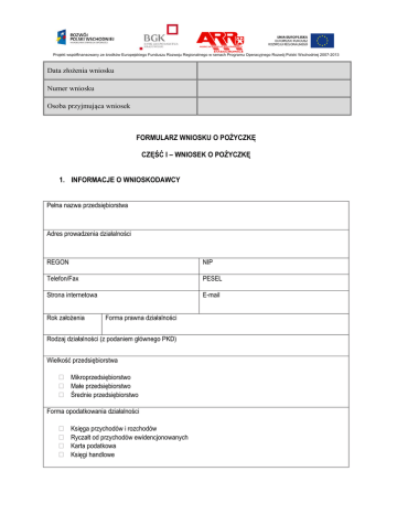 FORMULARZ WNIOSKU O POŻYCZKĘ CZĘŚĆ I – WNIOSEK O