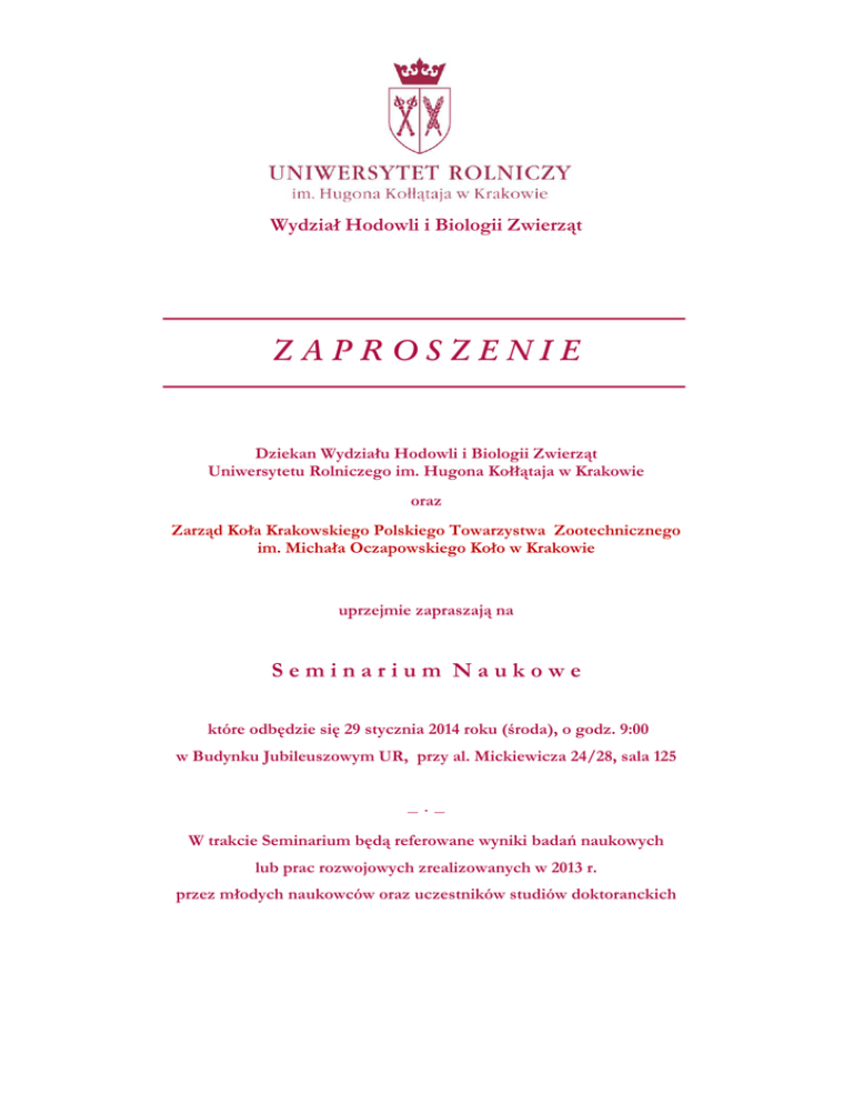 zaproszenie - Wydział Hodowli i Biologii Zwierząt