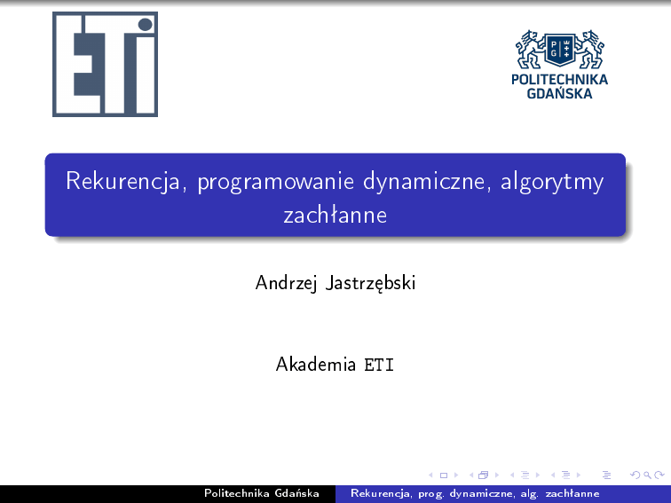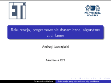 Rekurencja, prog. dynamiczne, alg. zachªanne
