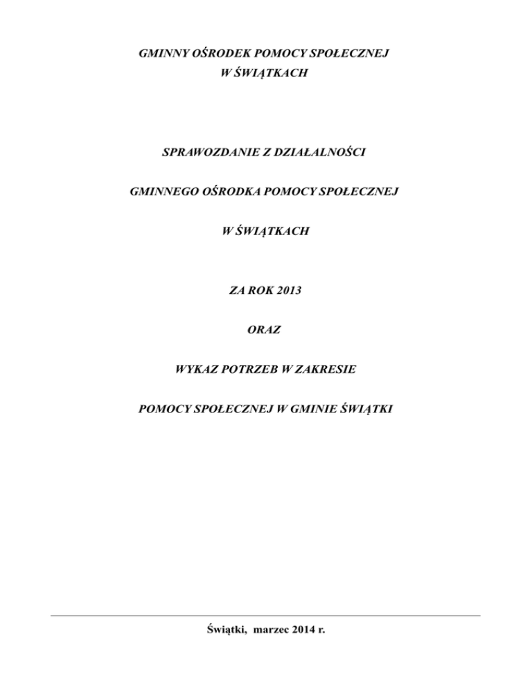 Sprawozdanie z działalności GOPS w Świątkach za 2013 rok