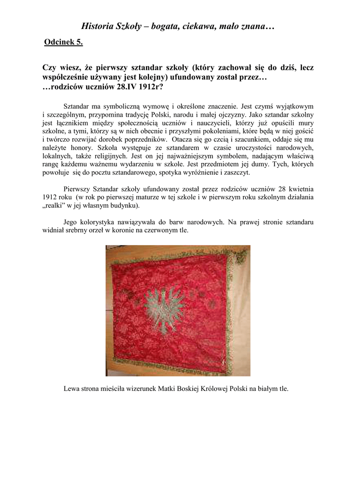 Czy wiesz, że pierwszy sztandar szkoły - lo