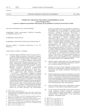 Dyrektywa 2001/83/WE z dnia 6 listopada 2001 r. w sprawie