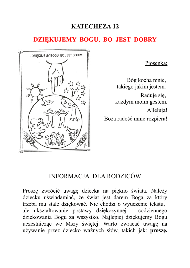 katecheza 12 dziękujemy bogu, bo jest dobry informacja dla rodziców