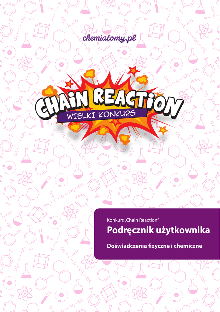 RS WIELKI KONKU Konkurs „Chain Reaction” Podręcznik użytkownika Doświadczenia fizyczne i chemiczne Wstęp Drodzy Uczniowie! To, że czytacie ten podręcznik, może oznaczać dwie rzeczy: albo interesujecie się naukami ścisłymi, albo lubicie dobrą zabawę z przyjaciółmi. Konkurs „CHAIN REACTION” („Reakcja łańcuchowa”) udowodni, że te dwie rzeczy można bardzo dobrze ze sobą połączyć. Poniżej znajdziecie krótkie wyjaśnienie dotyczące tego, czym jest konkurs „CHAIN REACTION” („Reakcja łańcuchowa”) i co należy zrobić, aby wziąć udział w zabawie, która pomoże poszerzyć Waszą wiedzę. Jesteście gotowi? Zaczynajmy, czas uruchomić kreatywność i spryt! Podręcznik użytkownika Konkurs „Chain Reaction” Co to jest „Reakcja łańcuchowa”? T„Reakcja łańcuchowa” to specjalna konstrukcja zbudowana z materiałów codziennego użytku, która działa w oparciu o ciąg następujących po sobie zjawisk fizycznych i reakcji chemicznych. Każda reakcja pociąga za sobą kolejną. Może to wyglądać na przykład tak: tocząca się piłka popycha rząd kostek domina, które przewracają filiżankę soli, która z kolei wpada do pojemnika z wodą, a ponieważ słona woda przewodzi prąd, zapala się dioda LED i tak dalej, i tak dalej. Historia Historia tego typu konstrukcji sięga około 100 lat wstecz, kiedy to amerykański rysownik i wynalazca Rube Goldberg zbudował pierwszą maszynę, wykonującą bardzo proste zadanie w złożony sposób. Być może najsłynniejszym z takich „wynalazków” była automatyczna serwetka, dzięki której świat poznał to niezwykłe urządzenie. Każdy lubi zabawne urządzenia W Stanach Zjednoczonych jest wiele projektów szkolnych, konkursów i klubów dyskusyjnych związanych z tym motywem, a uczniowie chętnie budują maszyny Rubego Goldberga. Podobne konkursy organizują NASA i Google, a na Discovery Channel można oglądać nowy program o tego typu konstrukcjach. Cel konkursu „CHAIN REACTION” („Reakcja łańcuchowa”) Podstawowym celem konkursu „CHAIN REACTION” („Reakcja łańcuchowa”) jest zwrócenie uwagi na znaczenie nauk ścisłych, jak również pokazanie, że fizyka i chemia mogą być zabawne, interesujące i nie polegają wyłącznie na „wkuwaniu” wzorów. Fizyka i chemia poruszają świat wokół nas. Teraz Twoja kolej! Otaczają nas zjawiska fizyczne i procesy chemiczne, choć możemy ich na co dzień nie dostrzegać. Jeżeli weźmiecie udział w konkursie, Waszym zadaniem będzie obserwacja, analiza i naukowe „naśladowanie” procesów i reakcji. Jak? Starajcie się być jak najbardziej kreatywni! W międzyczasie możecie rozejrzeć się za pustymi butelkami po wodzie, puszkami po napojach, tworzywowymi torbami i innymi odpadami nadającymi się do przetworzenia. Zebranie ich będzie Waszym wkładem w ochronę środowiska. Kto może uczestniczyć w konkursie? W konkursie „CHAIN REACTION” („Reakcja łańcuchowa”) mogą uczestniczyć zespoły uczniów w wieku 14–18 lat. Każdy zespół składa się z maksymalnie pięciu uczniów i jednego koordynatora (nauczyciela chemii) z jednej szkoły. Członków zespołu wybierze nauczyciel chemii na podstawie wyników uzyskanych przez uczniów na etapie planowania, oceniając to, kto przedstawi najciekawsze i najbardziej nietypowe pomysły, które mają uzasadnienie naukowe. Na czym polega zadanie? Zadanie polega na zaprojektowaniu i zbudowaniu „Reakcji łańcuchowej”, działającej dzięki serii zjawisk fizycznych i reakcji chemicznych. Zespół może korzystać z rozmaitych materiałów: • narzędzi i materiałów, które znajdują się w Pomocnym Pudełku *, • akcesoriów i materiałów, które można znaleźć w szkolnym laboratorium chemicznym, • wszelkich innych przedmiotów, a nawet zabawek przyniesionych z domu (pustych butelek PET, przedmiotów wykonanych własnoręcznie, na przykład z kartonu, zabawek z tworzyw sztucznych itp.), * Pomocne Pudełko to bezpłatny zestaw powitalny, który zawiera rozmaite narzędzia i materiały dostępne dla pierwszych 26 szkół. Pomocne Pudełko nie jest warunkiem udziału w konkursie „Chain Reaction” (Reakcja łańcuchowa”). 3 Podręcznik użytkownika Konkurs „Chain Reaction” Jak to zrobić? Wykorzystaj materiały codziennego użytku, aby stworzyć niezwykłe urządzenie! 1. Zaplanujcie! Zastanówcie się, jakie procesy fizyczne i reakcje chemiczne chcielibyście wykorzystać w Waszej „Reakcji łańcuchowej”. Zachęcamy do korzystania z podręcznika użytkownika oraz filmów pokazujących niektóre doświadczenia, dostępnych na stronie CHEMIATOMY.PL. Zbierzcie pomysły i przedstawcie je koordynującemu nauczycielowi chemii. 2. Spróbujcie! Najbardziej obiecujące pomysły oraz przemiany fizyczne i reakcje chemiczne, które uczniowie chcą wykorzystać, należy sprawdzić w praktyce przed rozpoczęciem budowy konstrukcji, oczywiście zawsze pod nadzorem nauczyciela chemii. Dokładne sprawdzenie danej reakcji da Wam pewność, że prawidłowo zadziała ona w „Reakcji łańcuchowej”. Nie wykonujcie poniższych doświadczeń samodzielnie, a przed wykonaniem któregokolwiek z doświadczeń proszę poradźcie się nauczyciela chemii lub fizyki. Ostrzeżenie! Niektóre reakcje chemiczne wymagają użycia substancji, które są niebezpieczne dla zdrowia lub środowiska. Zalecamy wykonywanie doświadczeń w szkolnym laboratorium chemicznym pod nadzorem nauczyciela chemii. Nie wolno przeprowadzać doświadczeń w domu! Przeczytajcie „Instrukcję bezpieczeństwa” na stronie 6! 3. Zbudujcie! Jeśli będziecie mieli naprawdę dobre pomysły, możecie dołączyć do zespołu, który weźmie udział w konkursie. Tutaj pojawia się prawdziwa praca zespołowa: członkowie zespołu muszą krok po kroku stworzyć konstrukcję „Reakcji łańcuchowej” muszą, w oparciu o własne pomysły, krok po kroku. Nie należy się spieszyć: budowa musi zająć trochę cz